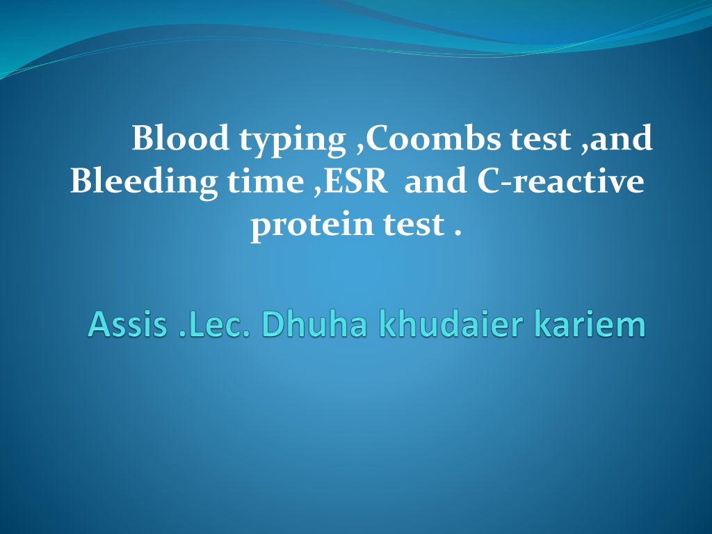 Blood typing ,Coombs test ,and Bleeding time ,ESR and C-reactive protein test .