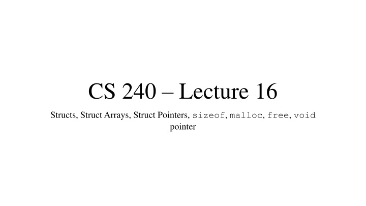 CS 240 Lecture 16 Structs, Struct Arrays, Struct Pointers, sizeof, malloc, free, void pointer