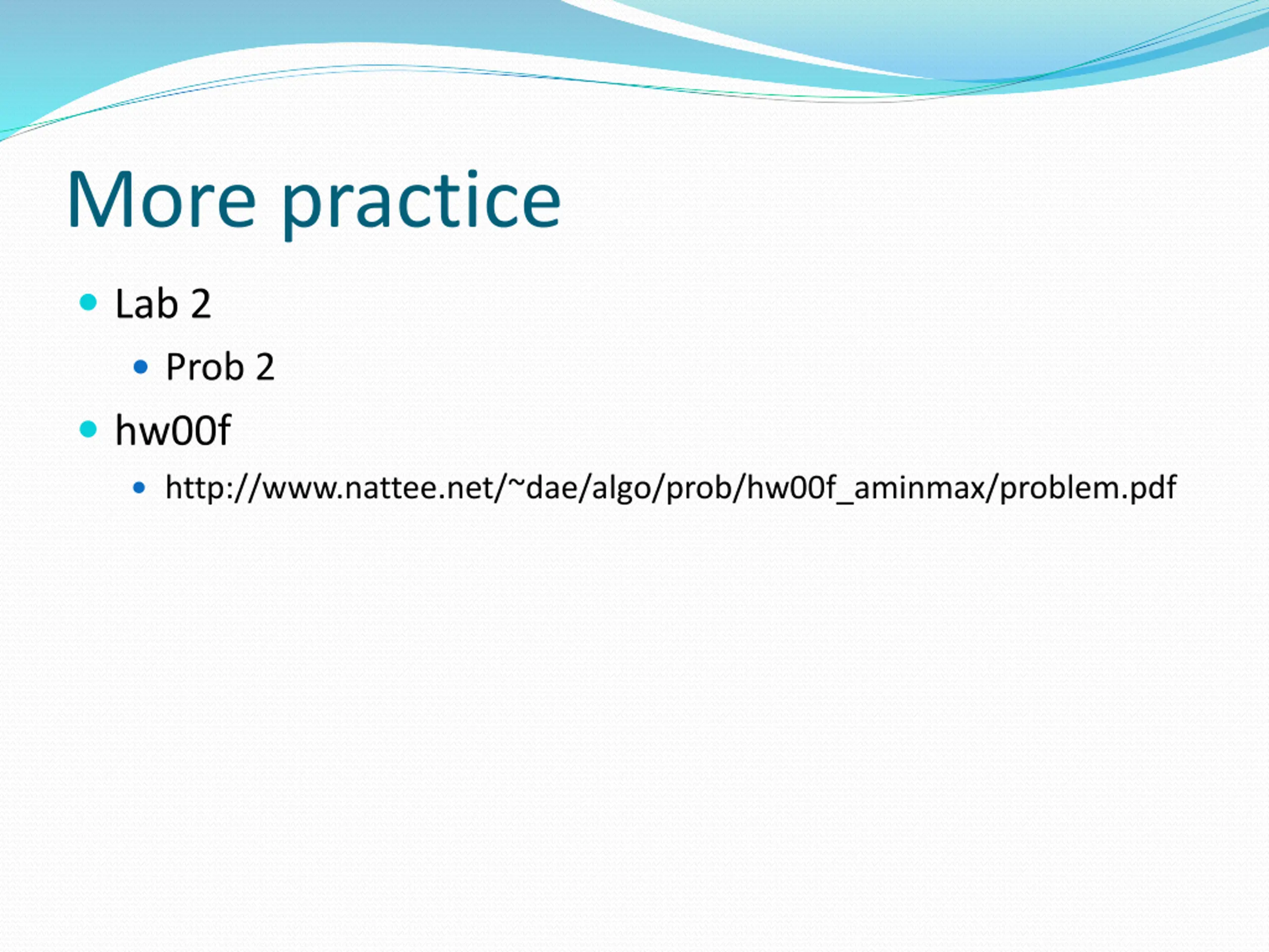 More practice Lab 2 Prob 2 hw00f http://www.nattee.net/~dae/algo/prob/hw00f_aminmax/problem.pdf