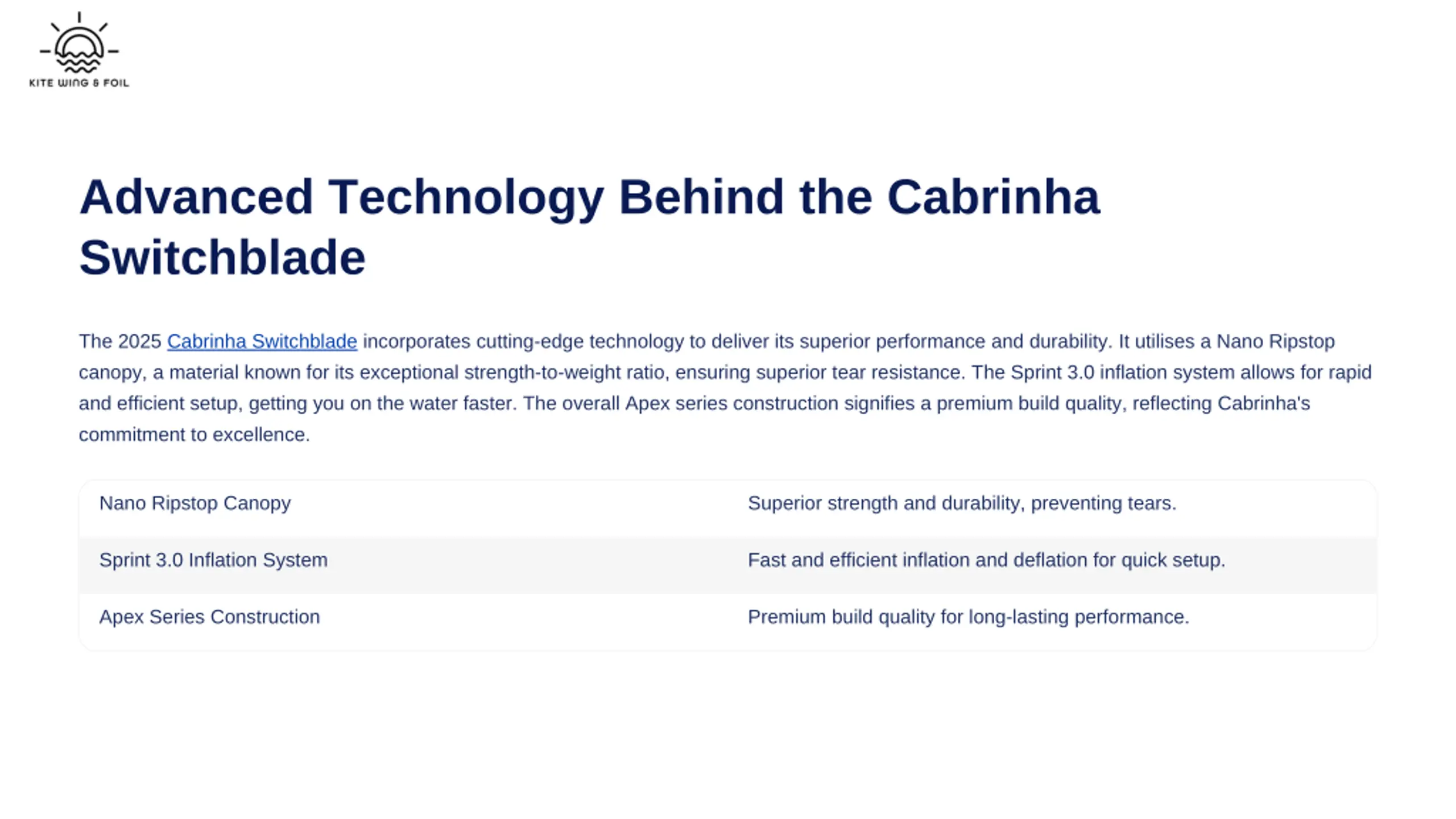 Key Innovations of the 2025 Cabrinha Switchblade The 2025 Cabrinha Switchblade introduces several key innovations that push the boundaries of kiteboarding performance. A refined planform optimises its aerodynamic efficiency, while new bridle tuning significantly enhances depower capabilities and overall stability. Furthermore, the integration of a high-tenacity Dacron frame ensures extreme durability, allowing the kite to withstand the most demanding conditions. Refined Planform New Bridle Tuning High-Tenacity Dacron Frame Exceptional structural integrity. Improved aerodynamic shape. Greater depower range. Enhanced flight characteristics. Superior stability in gusty winds. Increased longevity of the kite. Optimised for diverse wind conditions. More responsive steering. Enhanced resistance to wear and tear.