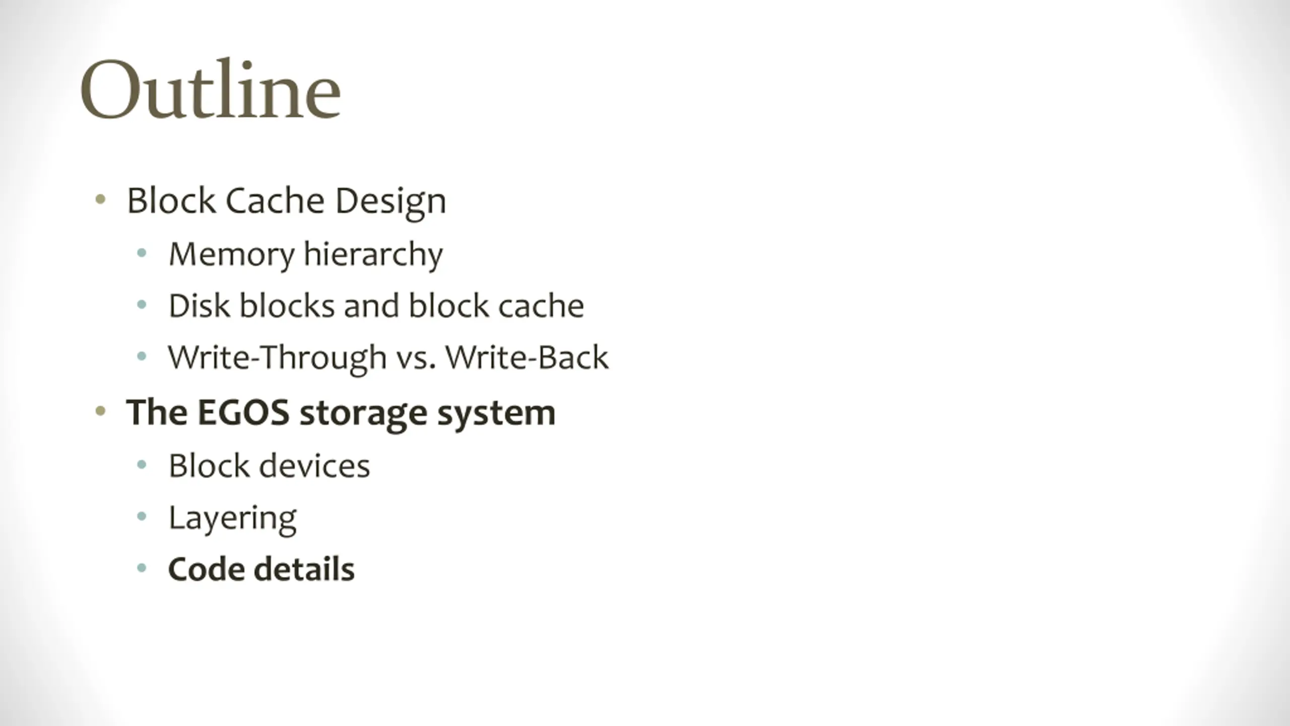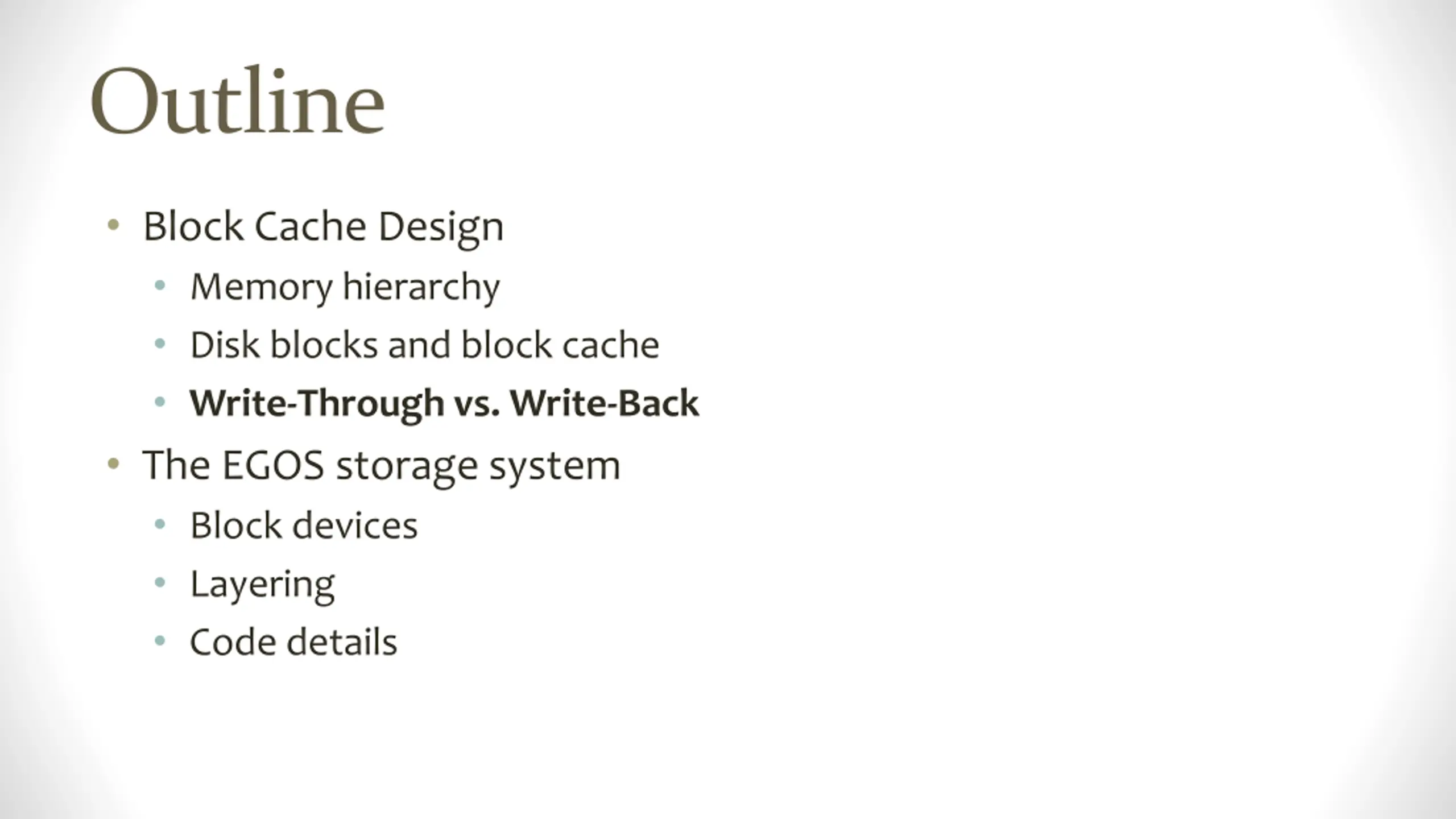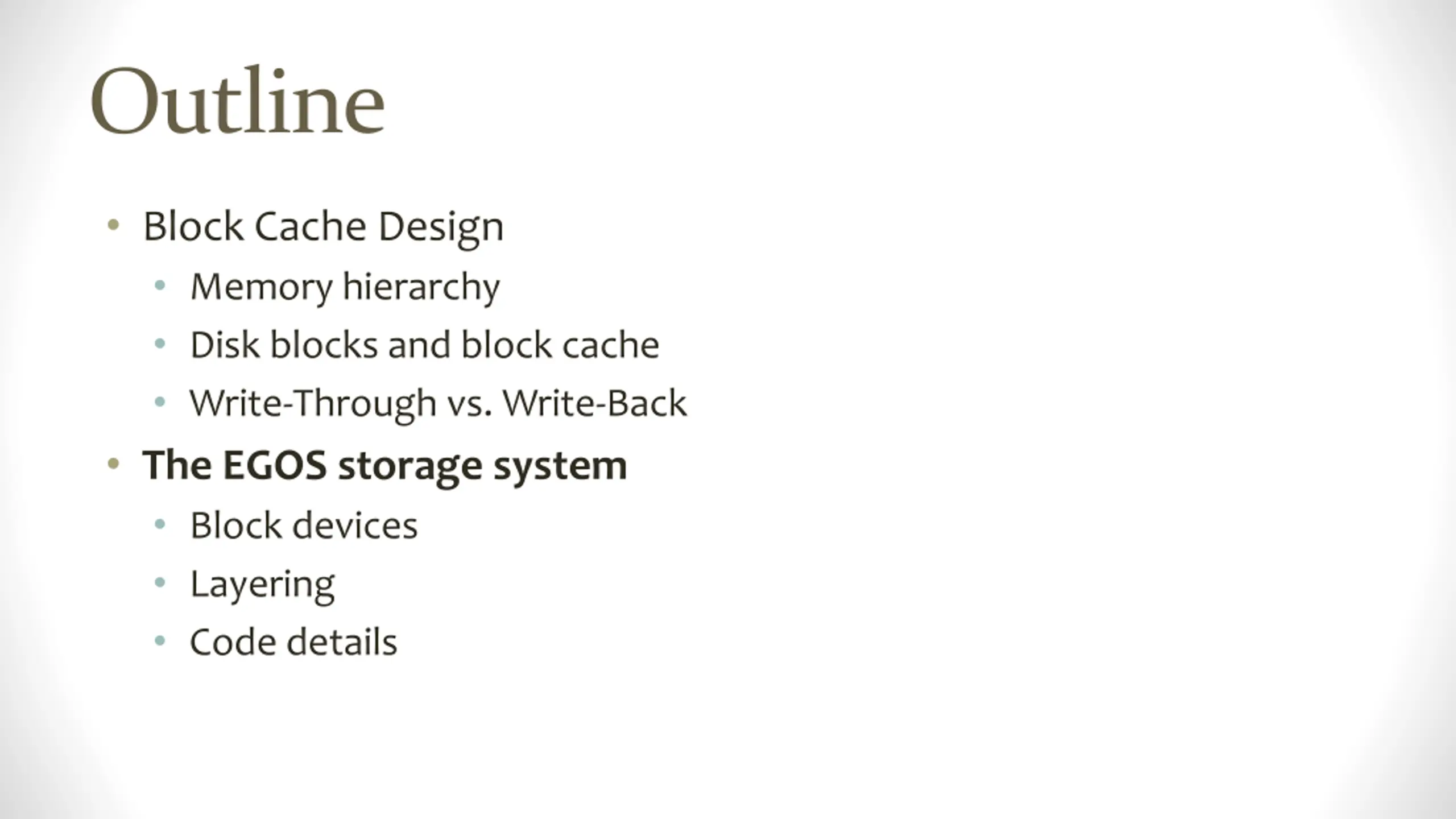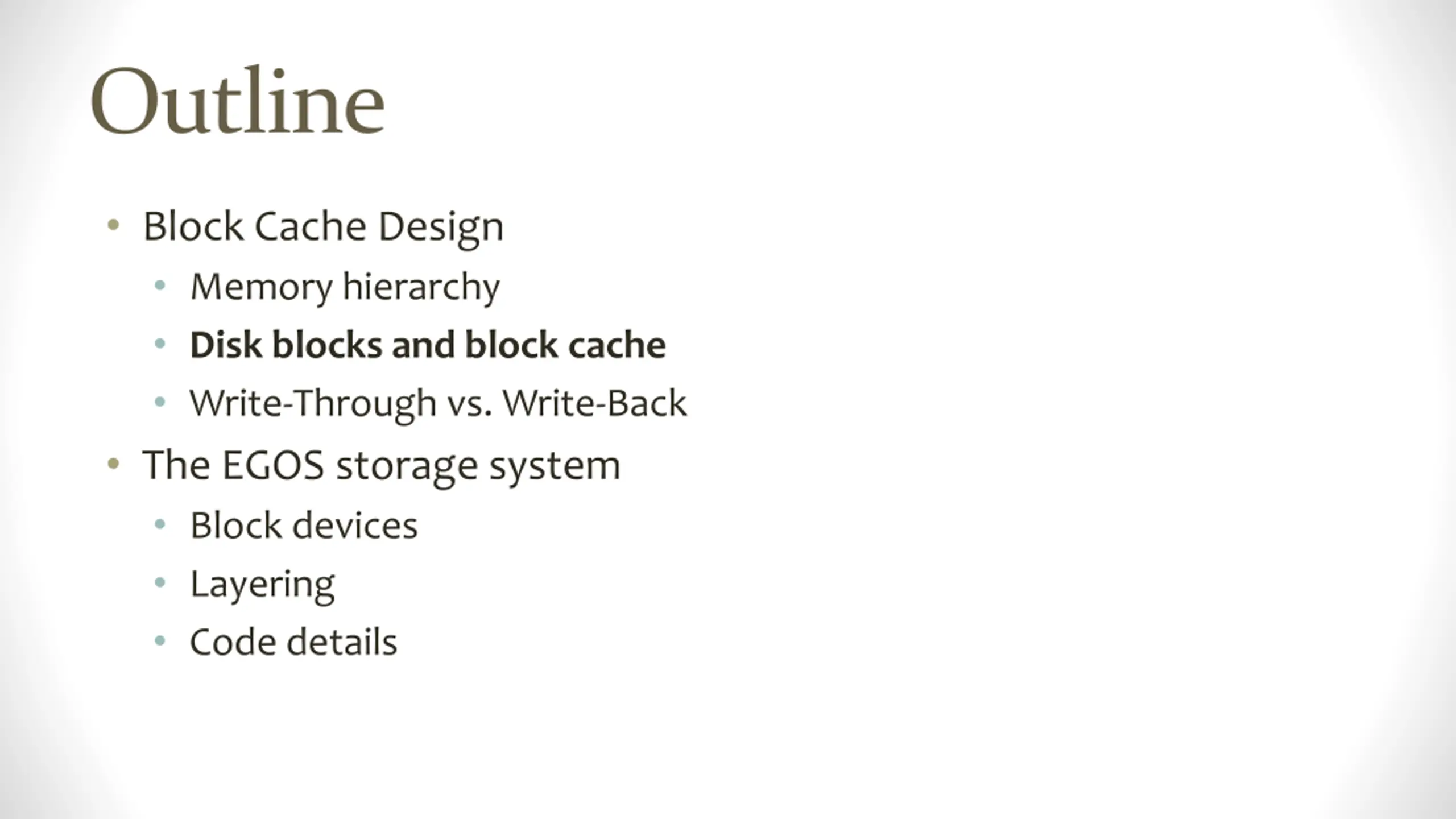 Outline for Today Block Cache Design Memory hierarchy Disk blocks and block cache Write-Through vs. Write-Back The EGOS storage system Block devices Layering Code details