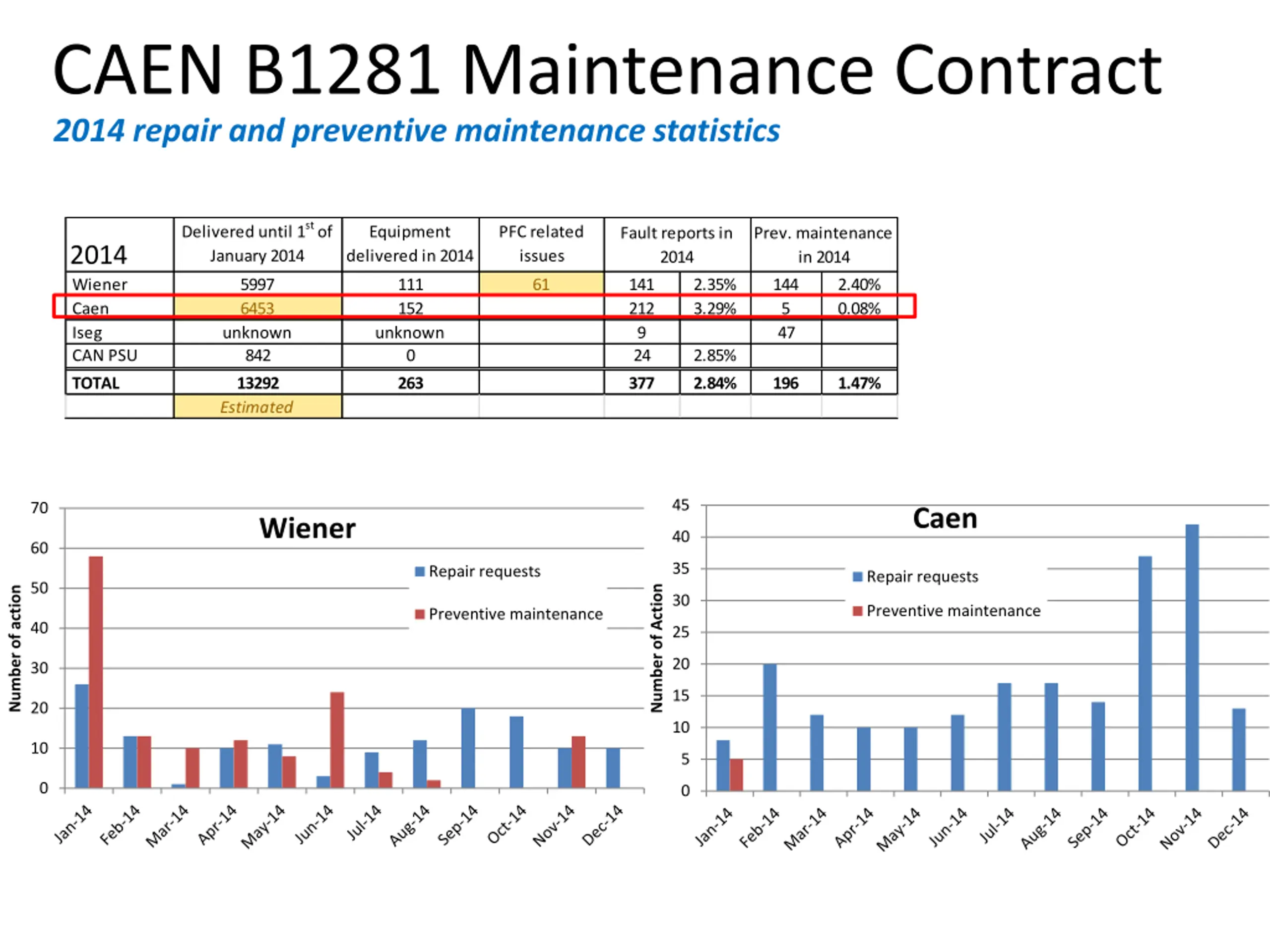 Explore the procurement and maintenance contracts by CAEN along with detailed statistics, equipment lists, and maintenance insights. Discover the stability and efficiency of CAEN contracts up to the present day.