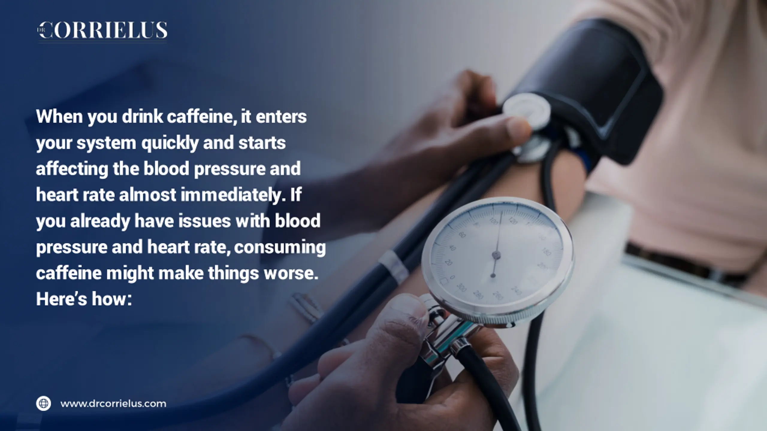 When you drink caffeine, it enters your system quickly and starts affecting the blood pressure and heart rate almost immediately. If you already have issues with blood pressure and heart rate, consuming caffeine might make things worse. Here s how: www.drcorrielus.com