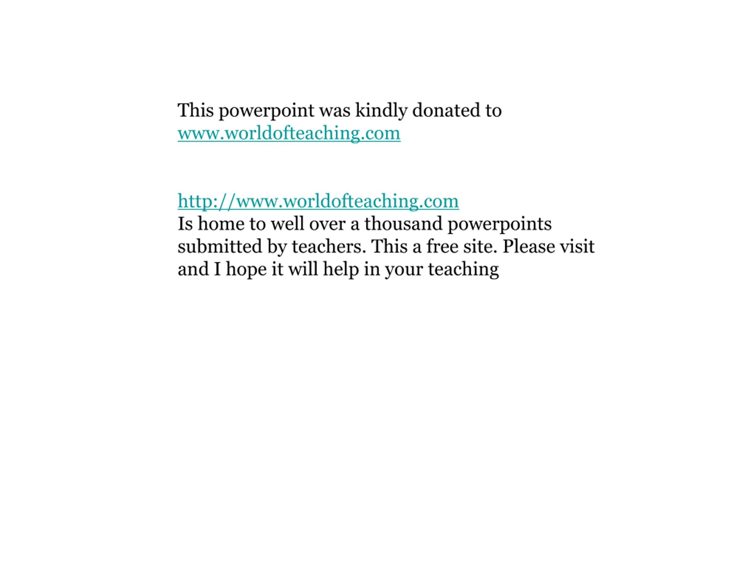 This powerpoint was kindly donated to www.worldofteaching.com http://www.worldofteaching.com Is home to well over a thousand powerpoints submitted by teachers. This a free site. Please visit and I hope it will help in your teaching