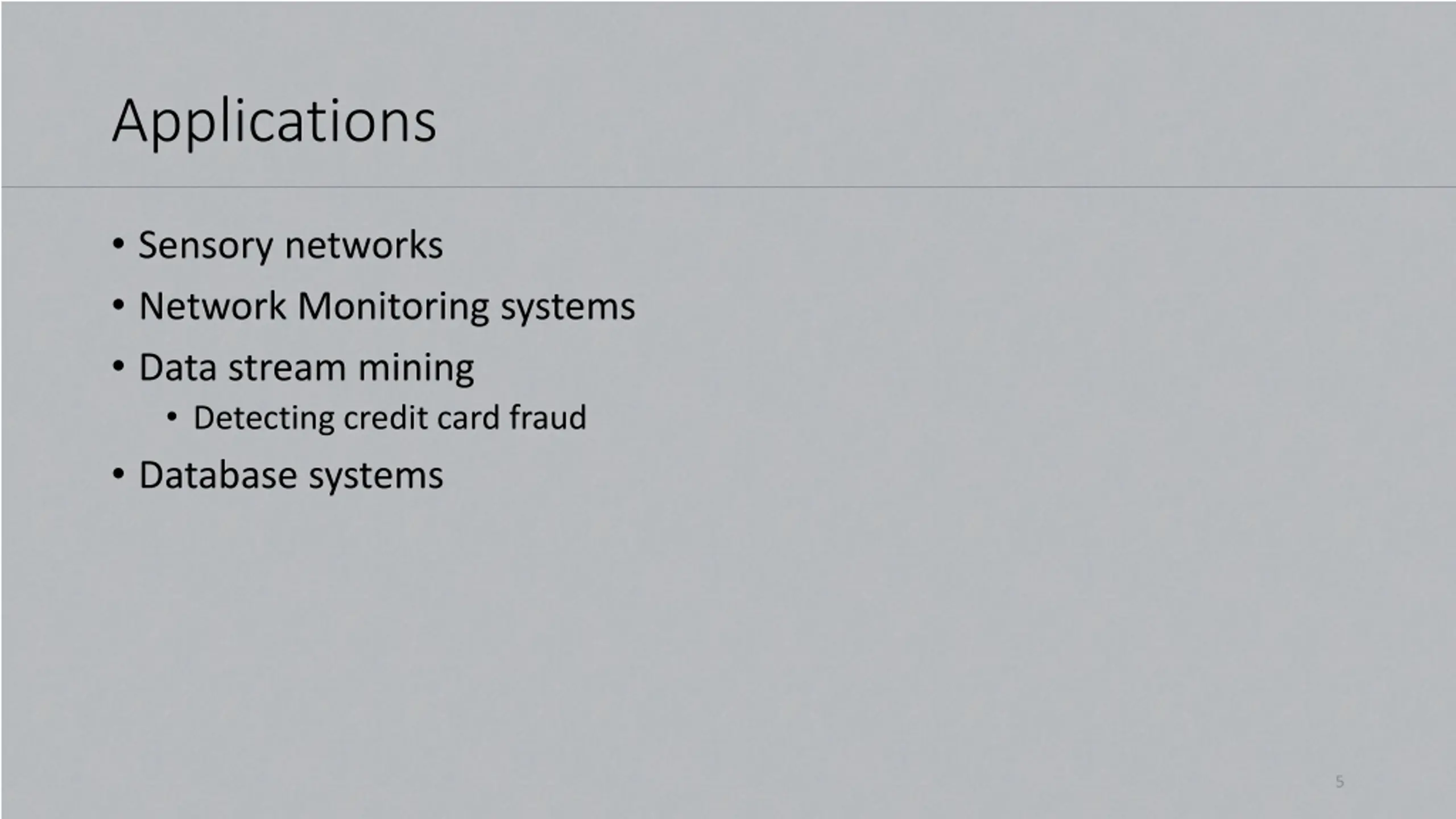 Applications Sensory networks Network Monitoring systems Data stream mining Detecting credit card fraud Database systems 5