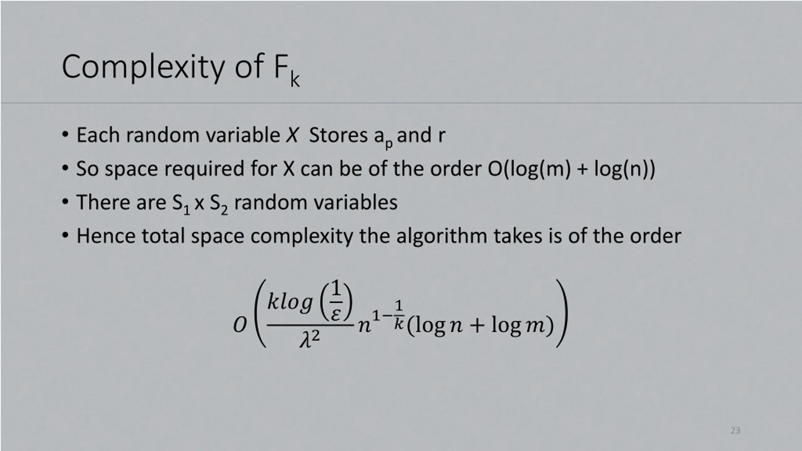 Complexity of Fk Each random variable X Stores ap and r So space required for X can be of the order O(log(m) + log(n)) There are S1 x S2 random variables Hence total space complexity the algorithm takes is of the order ????1 ?1 1 ? ? ?(log? + log?) ?2 23