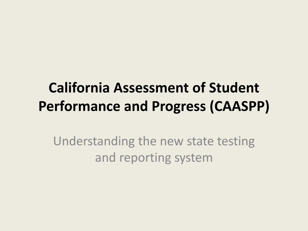 California Assessment of Student Performance and Progress (CAASPP) Understanding the new state testing and reporting system