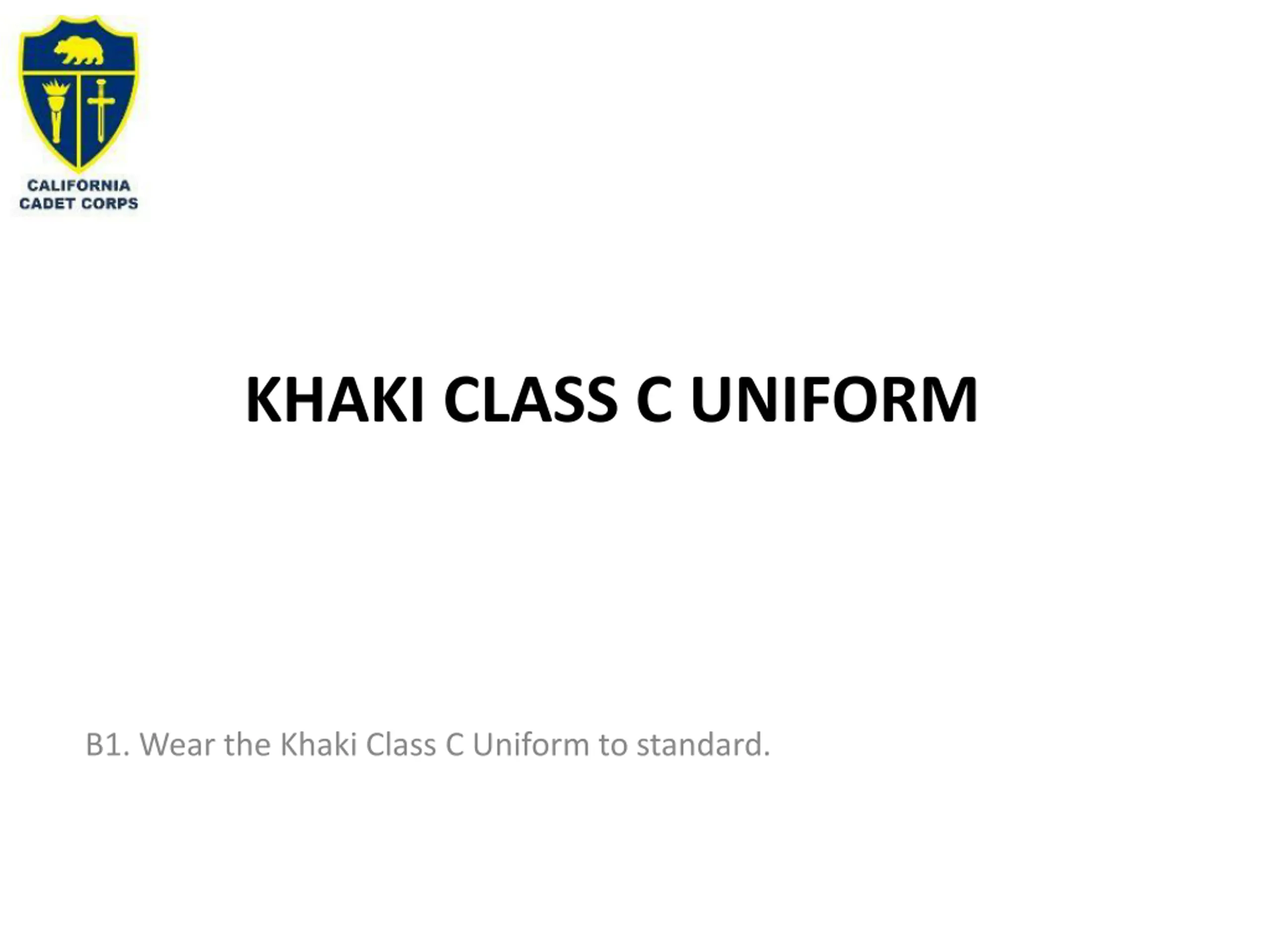 KHAKI CLASS C UNIFORM B1. Wear the Khaki Class C Uniform to standard.