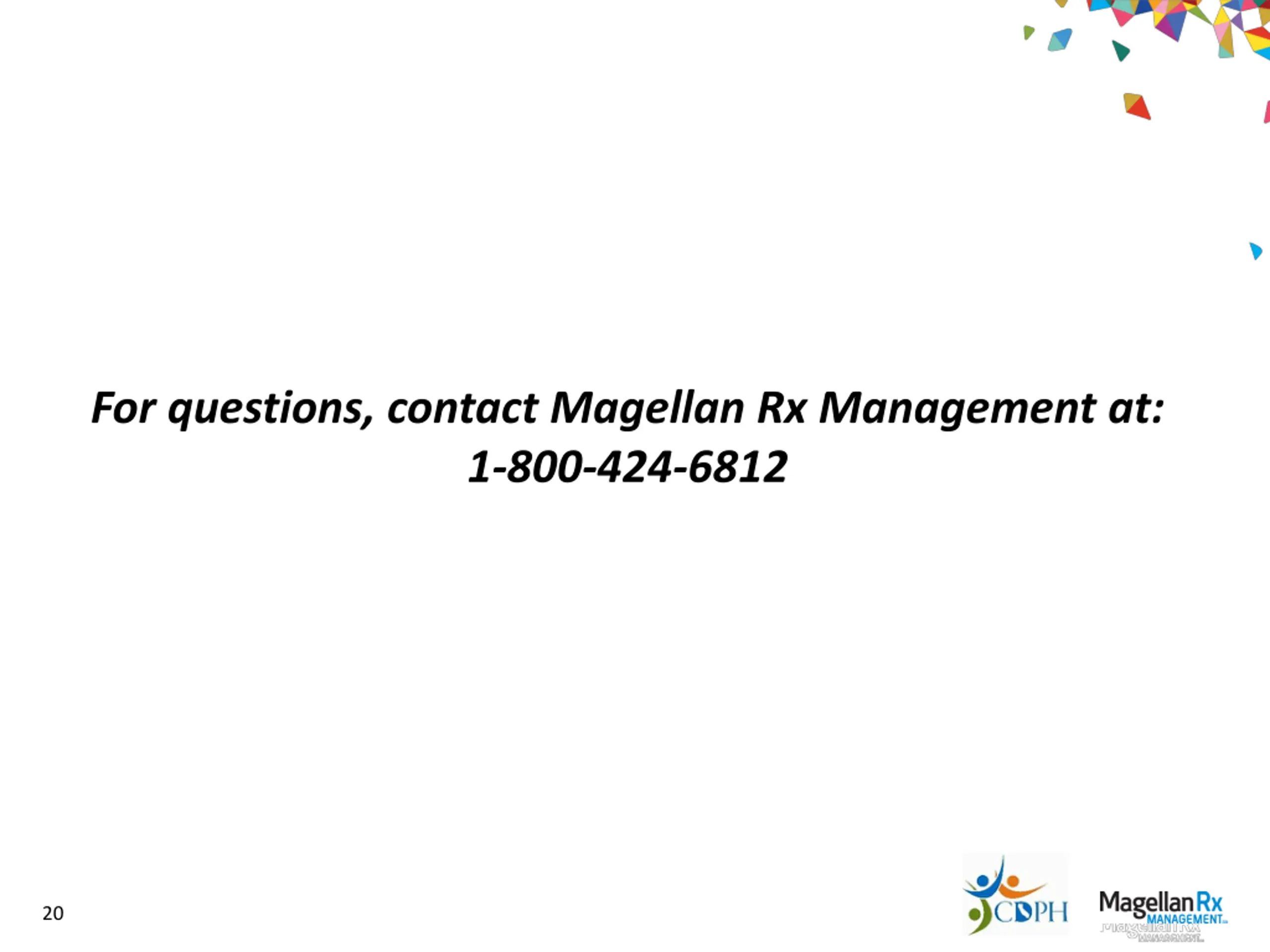 For questions, contact Magellan Rx Management at: 1-800-424-6812 20