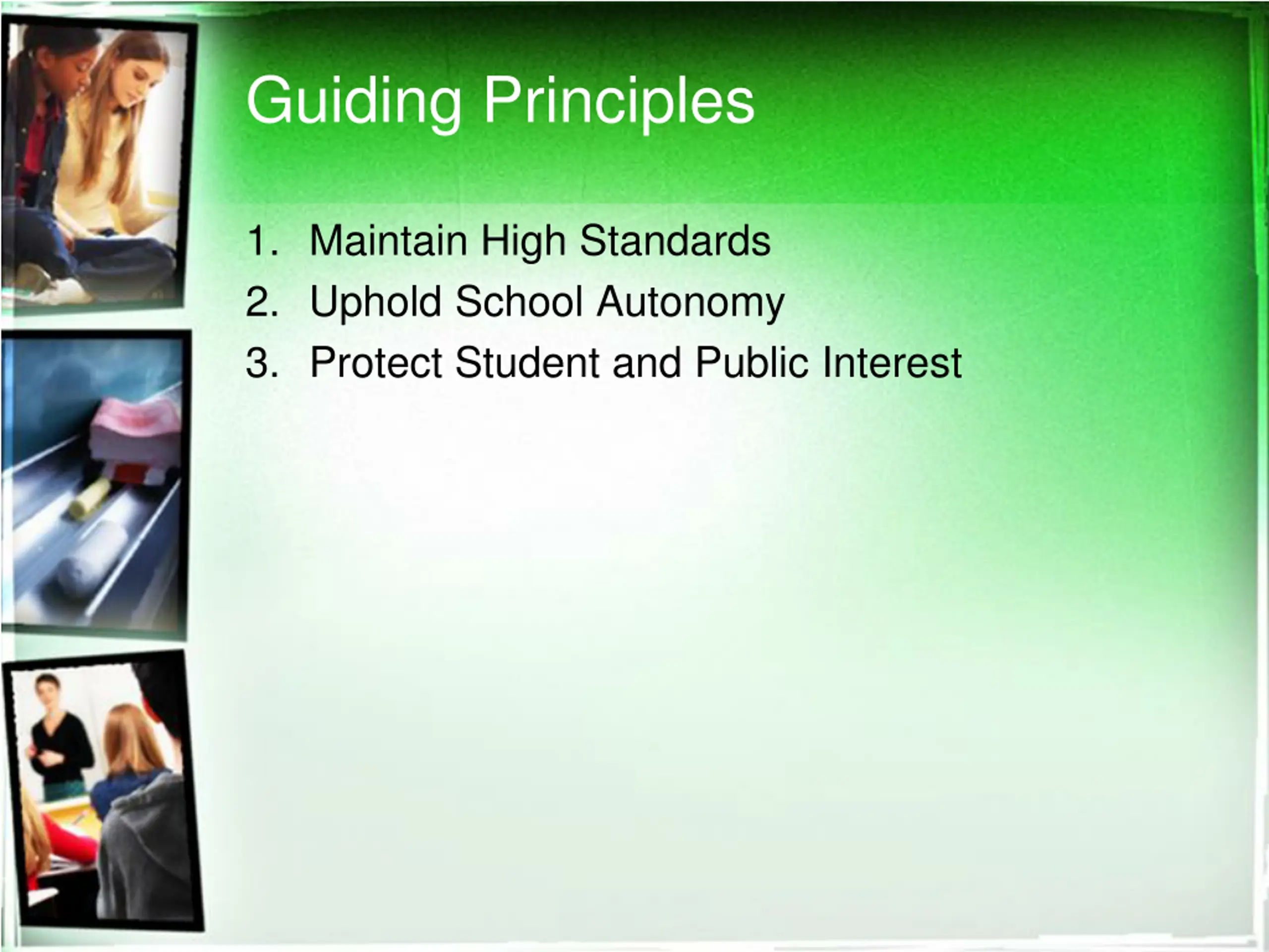 Guiding Principles 1. Maintain High Standards 2. Uphold School Autonomy 3. Protect Student and Public Interest