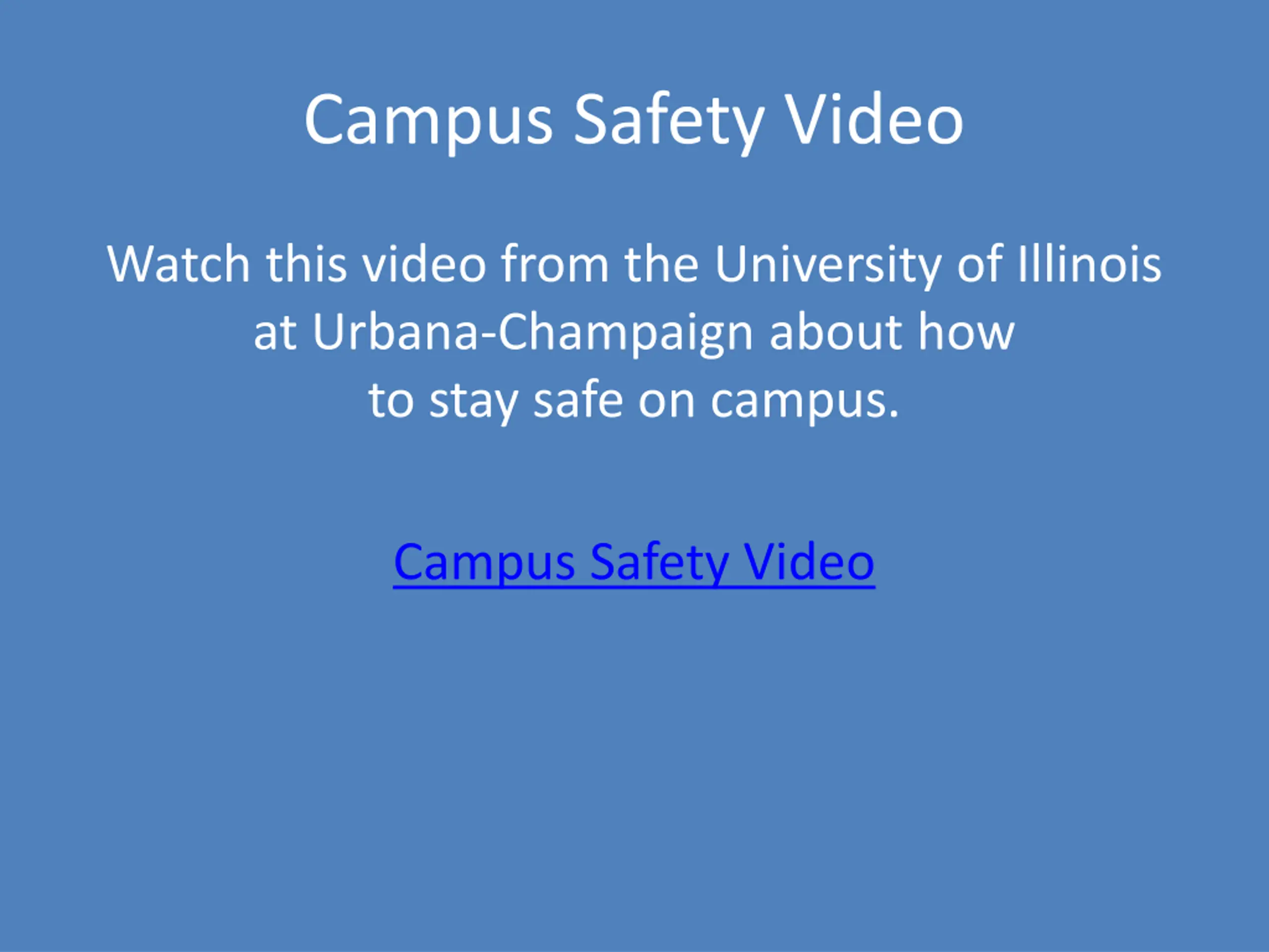 Campus Safety Video Watch this video from the University of Illinois at Urbana-Champaign about how to stay safe on campus. Campus Safety Video