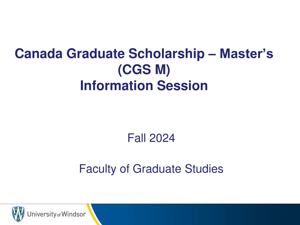 Canada Graduate Scholarship Masters (CGS M) Information Session Fall 2024 Faculty of Graduate Studies