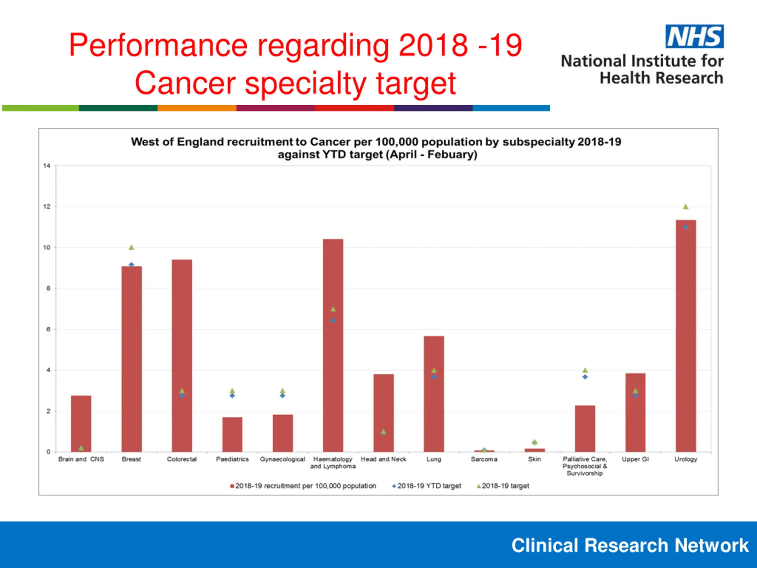 Performance regarding 2018 -19 Cancer specialty target Clinical Research Network