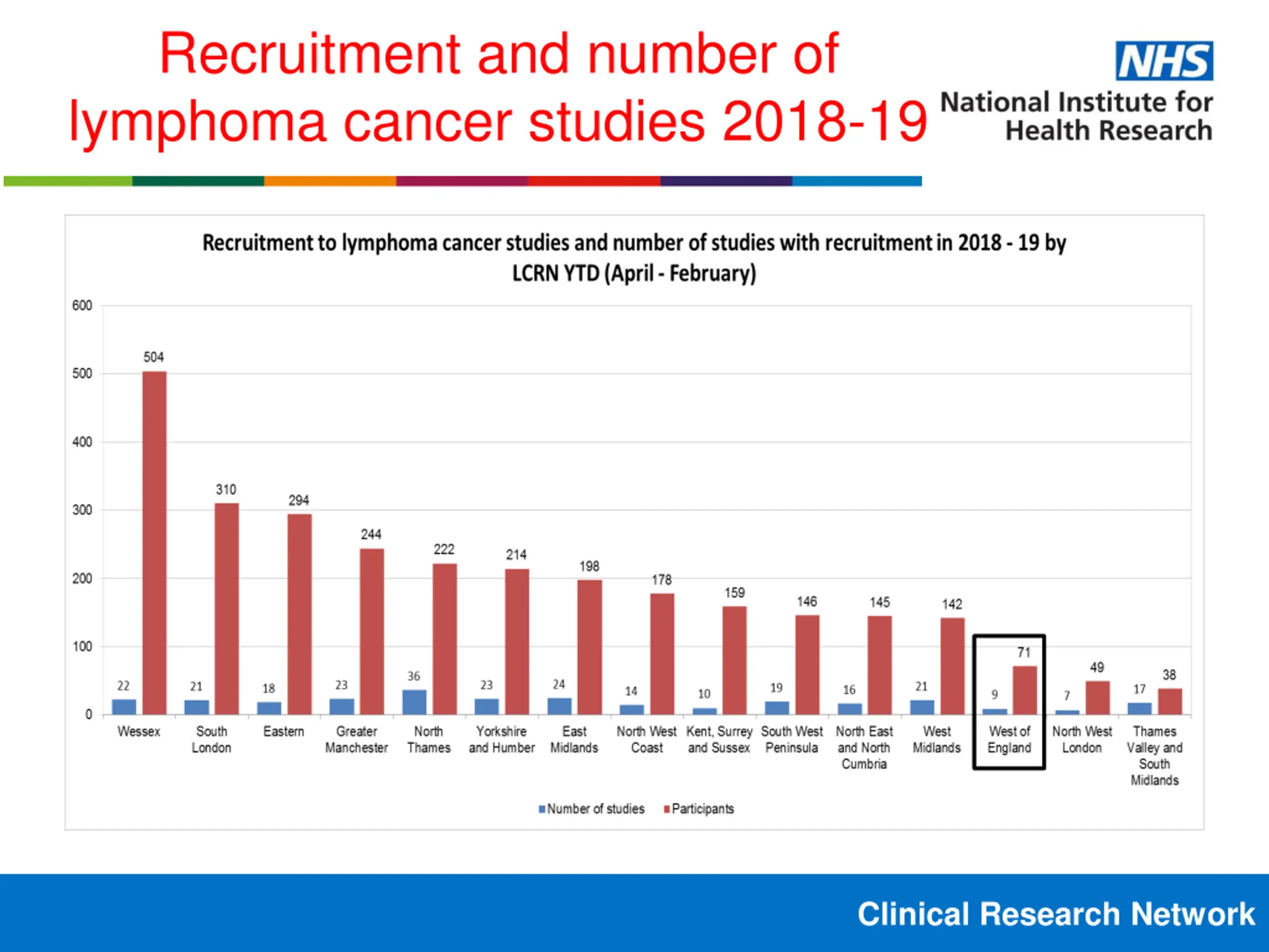 Recruitment and number of lymphoma cancer studies 2018-19 Clinical Research Network