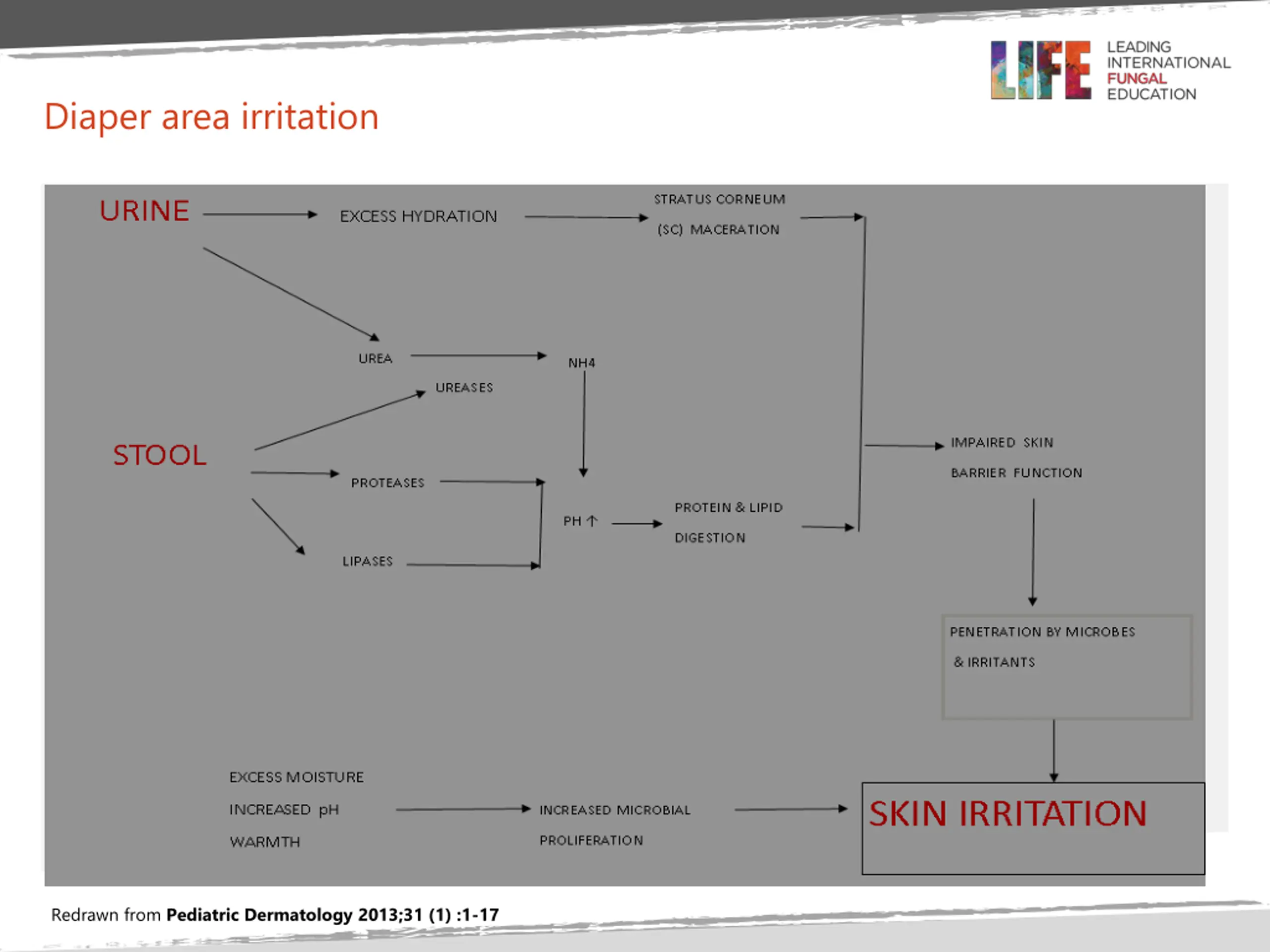 Diaper area irritation Redrawn from Pediatric Dermatology 2013;31 (1) :1-17