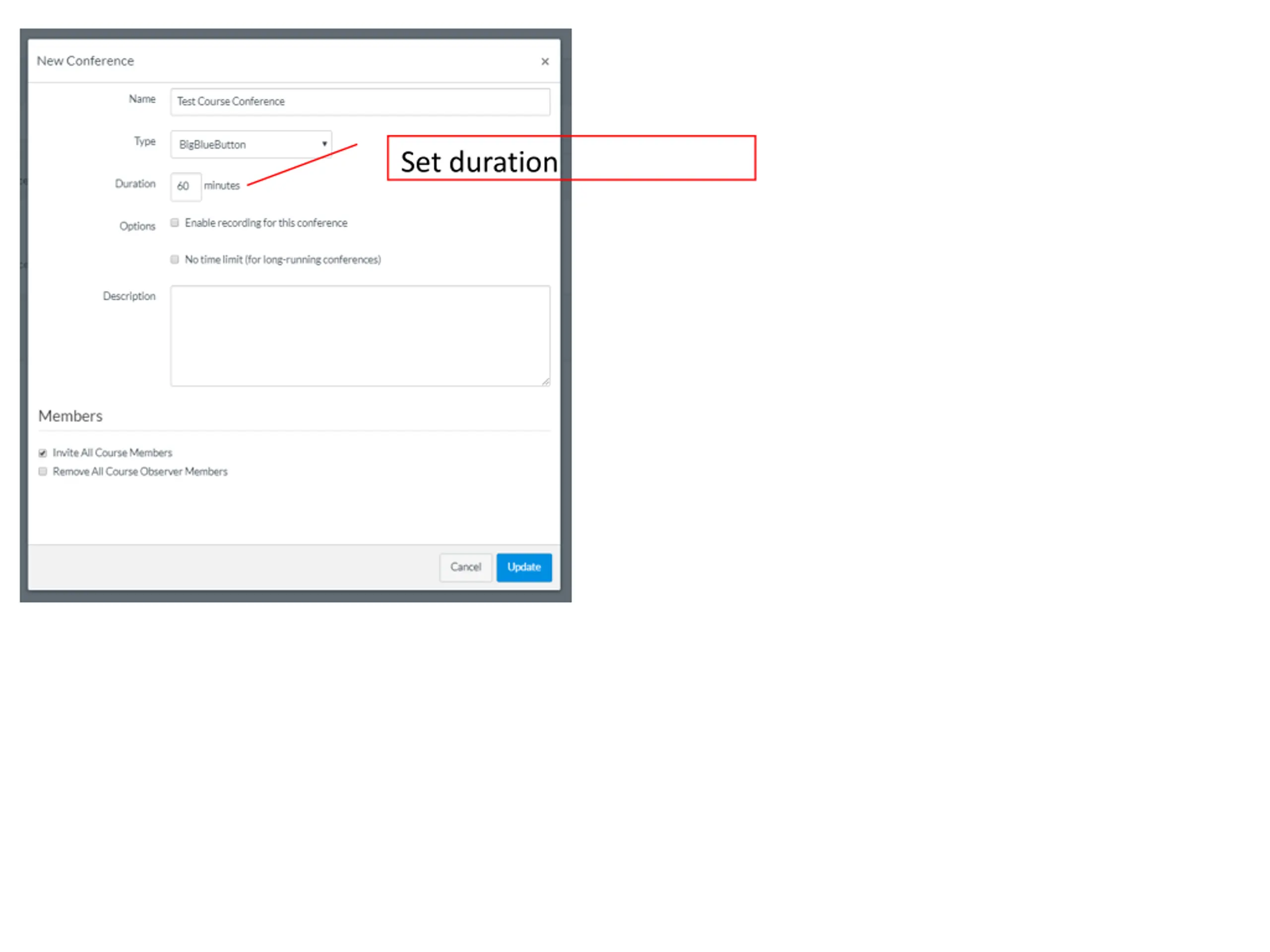 Conferences through Big Blue Button Disclaimer: These is just the little bit I have learned about using Conferences through Canvas. I m sure there are many capabilities I am unaware of. Also, I only tested this out at a time where, presumably, there was not heavy online traffic and I only had one conference attendee not sure how smooth it will be with an entire class when a large portion of the MU population may be trying to work through the same program you may want to have a trial run.