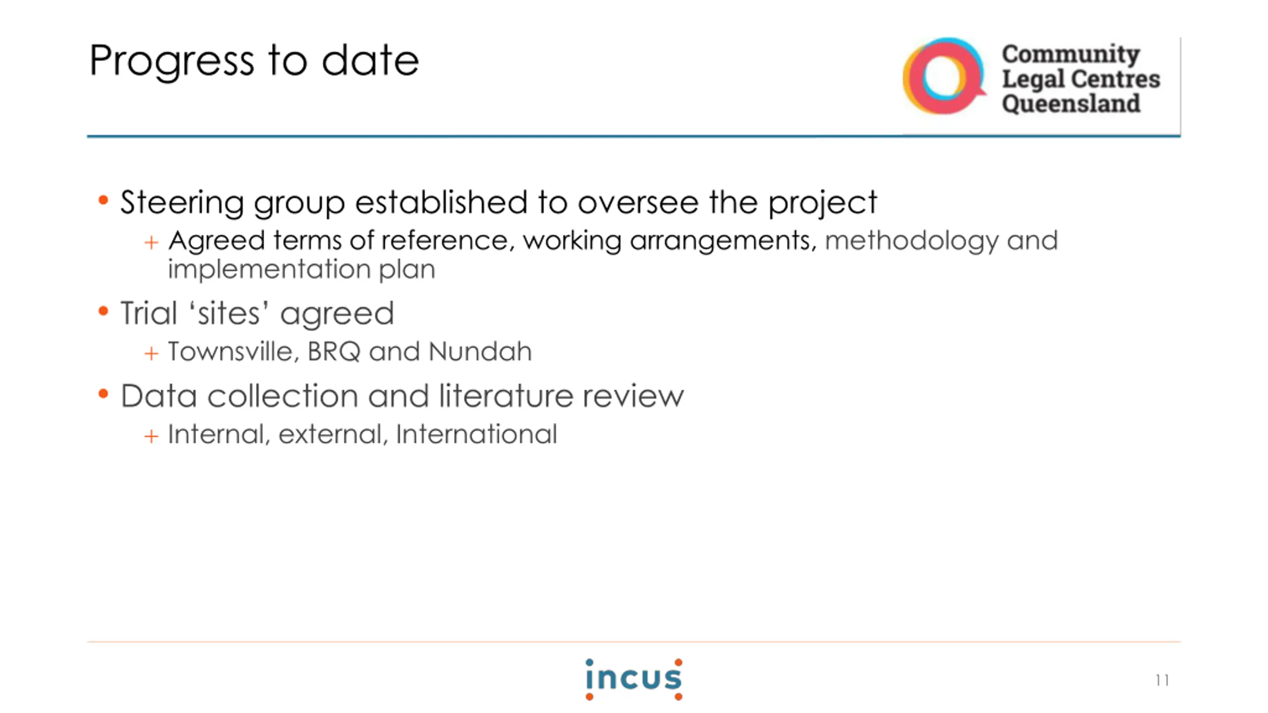 Progress to date Steering group established to oversee the project + Agreed terms of reference, working arrangements, methodology and implementation plan Trial sites agreed + Townsville, BRQ and Nundah Data collection and literature review + Internal, external, International 11
