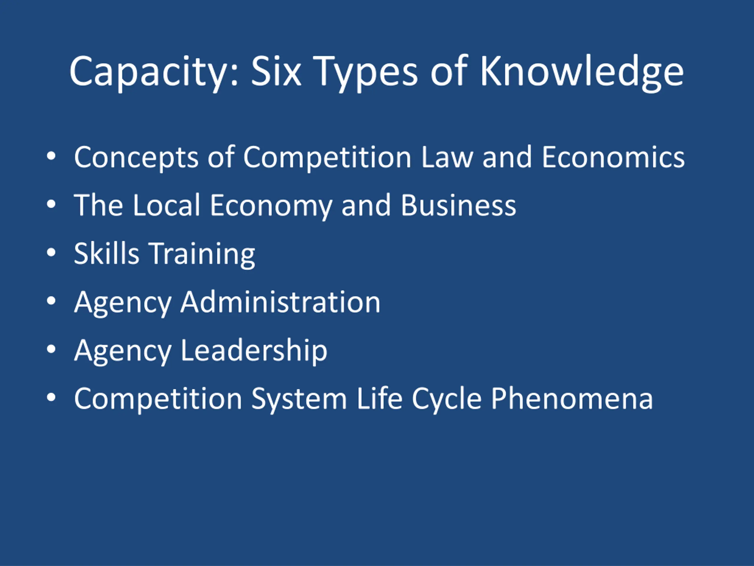 Capacity: Six Types of Knowledge Concepts of Competition Law and Economics The Local Economy and Business Skills Training Agency Administration Agency Leadership Competition System Life Cycle Phenomena