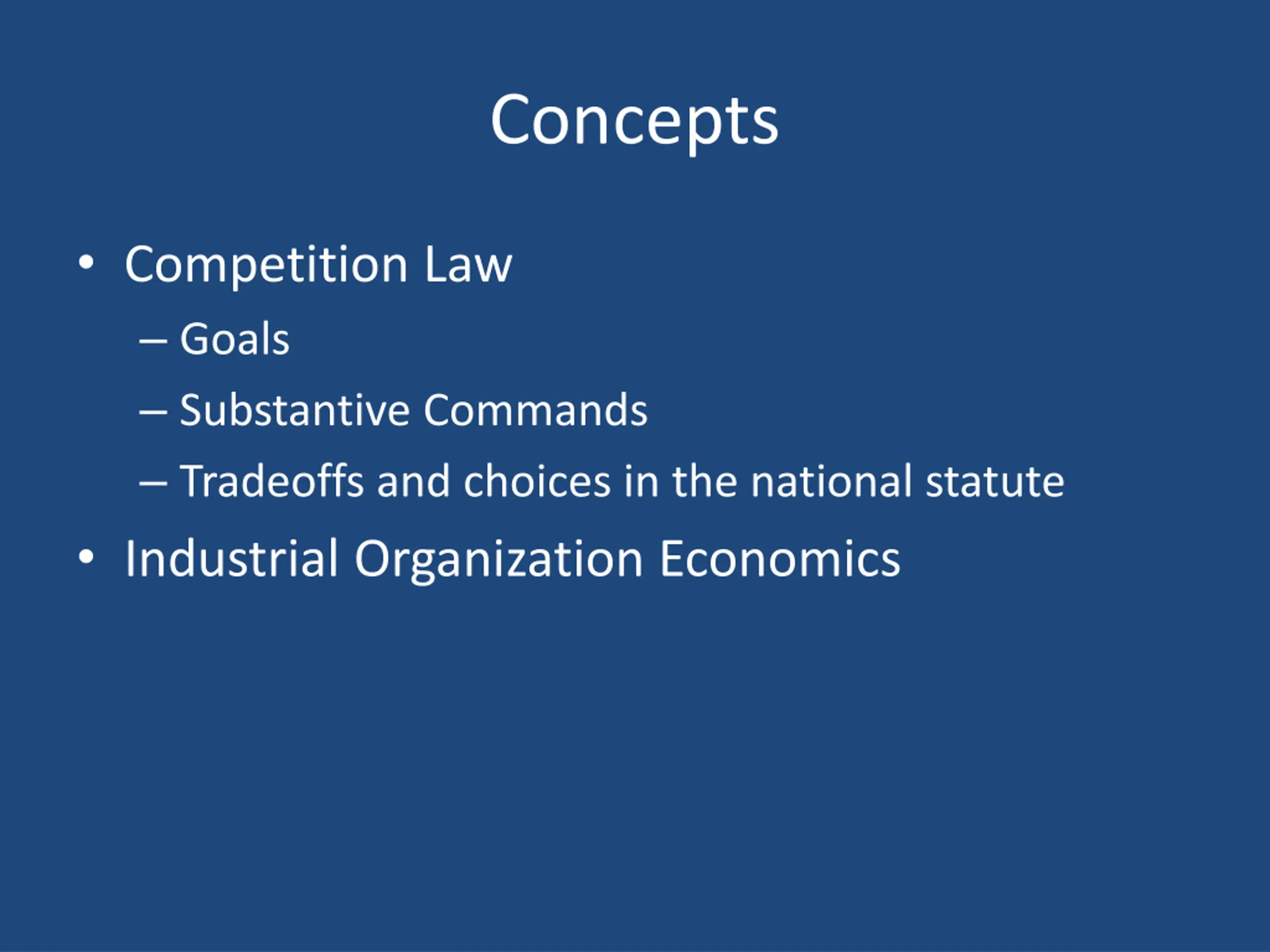 Concepts Competition Law Goals Substantive Commands Tradeoffs and choices in the national statute Industrial Organization Economics