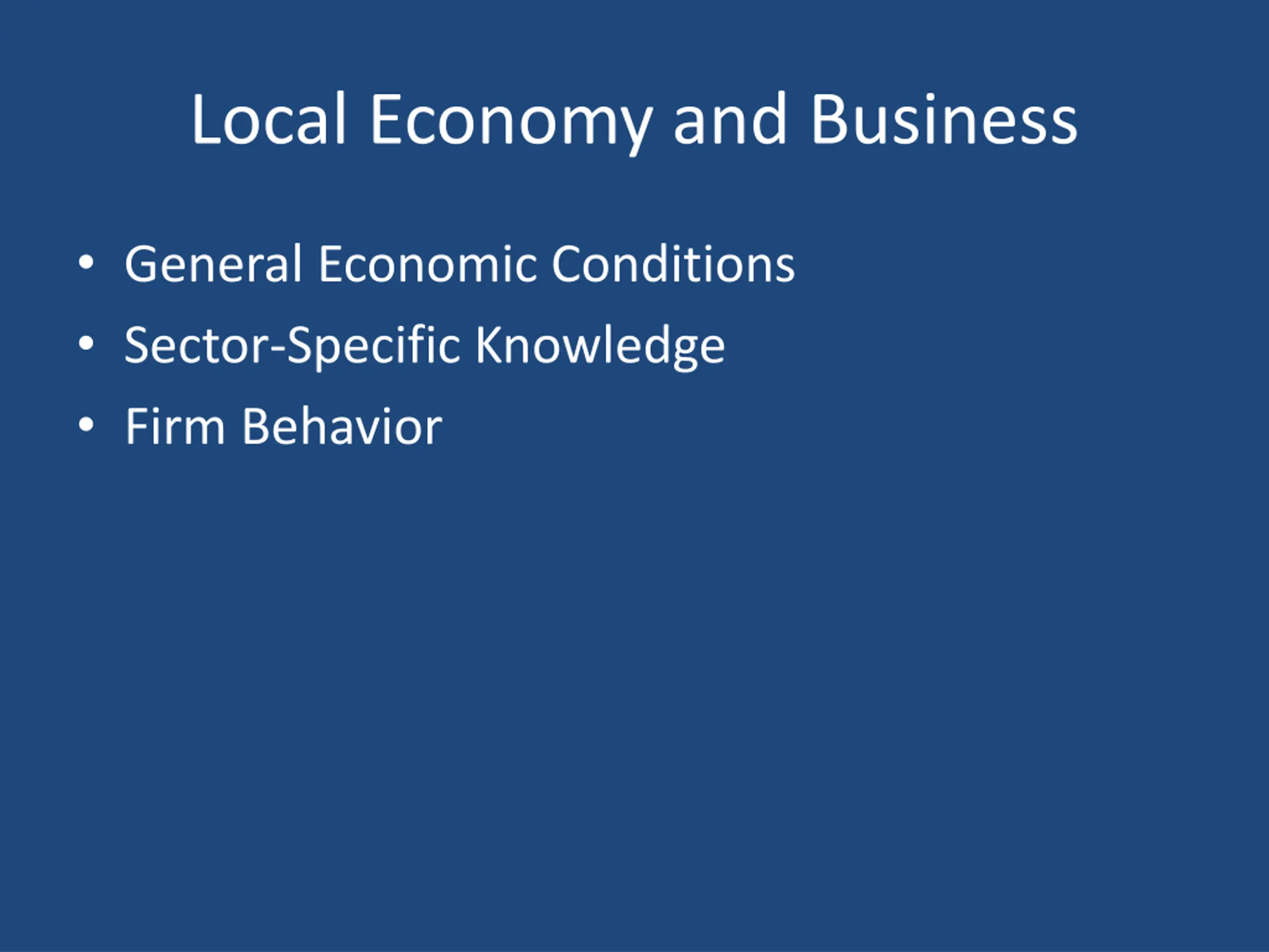 Local Economy and Business General Economic Conditions Sector-Specific Knowledge Firm Behavior