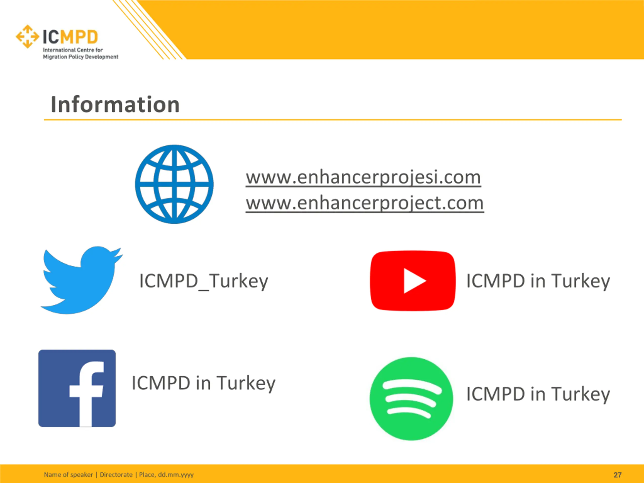 Information www.enhancerprojesi.com www.enhancerproject.com ICMPD_Turkey ICMPD in Turkey ICMPD in Turkey ICMPD in Turkey 27 Name of speaker | Directorate | Place, dd.mm.yyyy