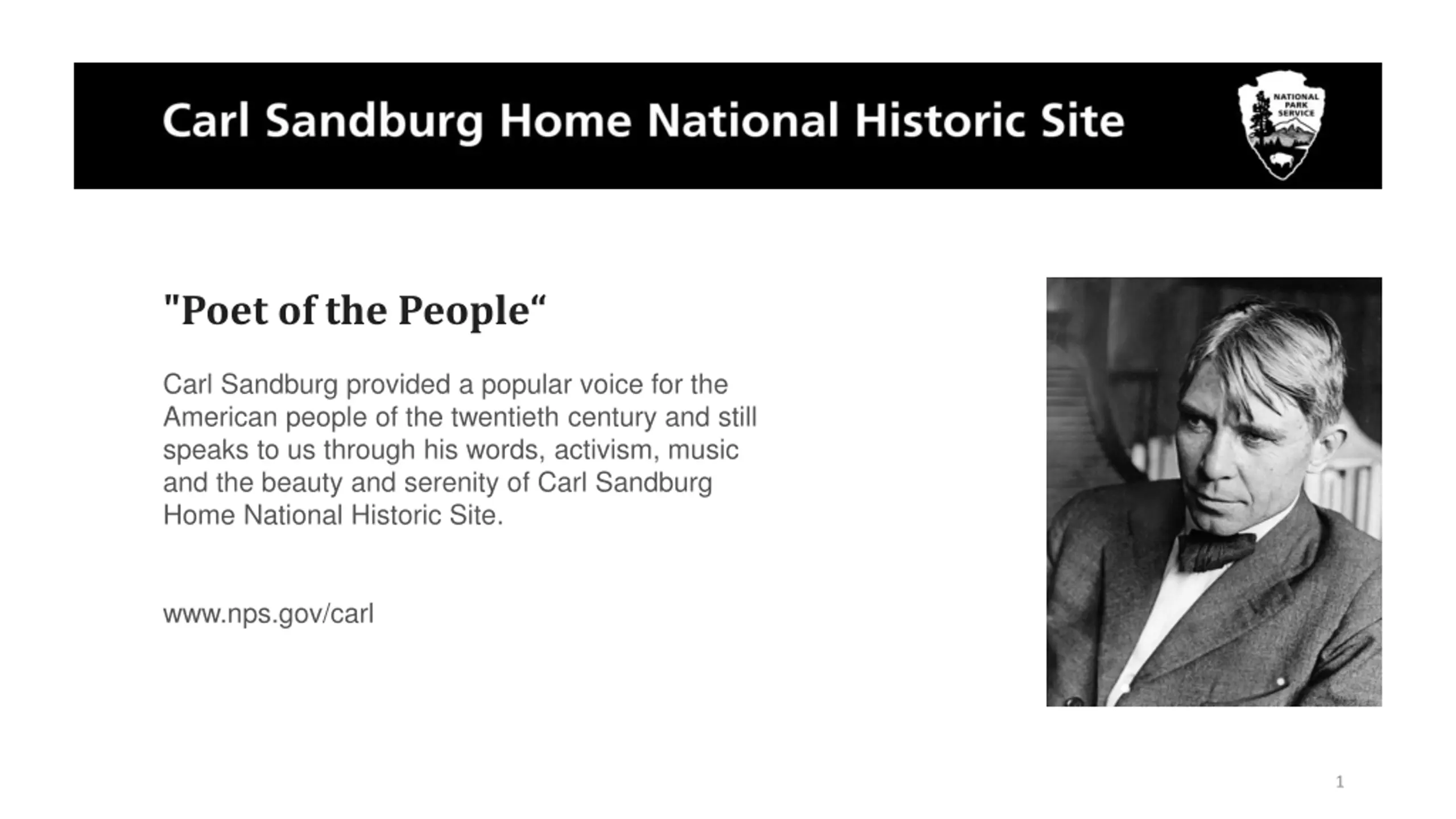 "Poet of the People Carl Sandburg provided a popular voice for the American people of the twentieth century and still speaks to us through his words, activism, music and the beauty and serenity of Carl Sandburg Home National Historic Site. www.nps.gov/carl 1