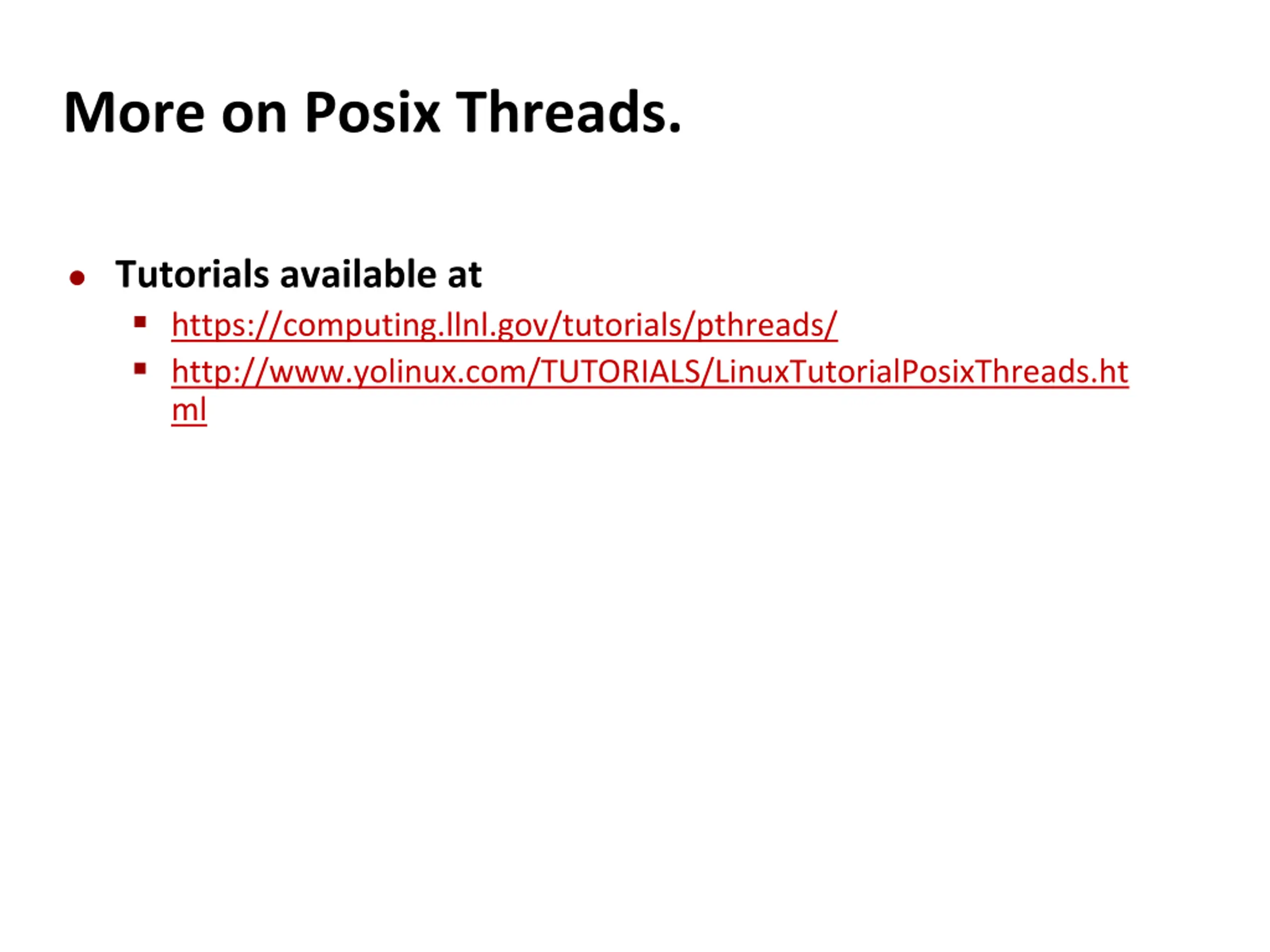 Carnegie Mellon More on Posix Threads. Tutorials available at https://computing.llnl.gov/tutorials/pthreads/ http://www.yolinux.com/TUTORIALS/LinuxTutorialPosixThreads.ht ml