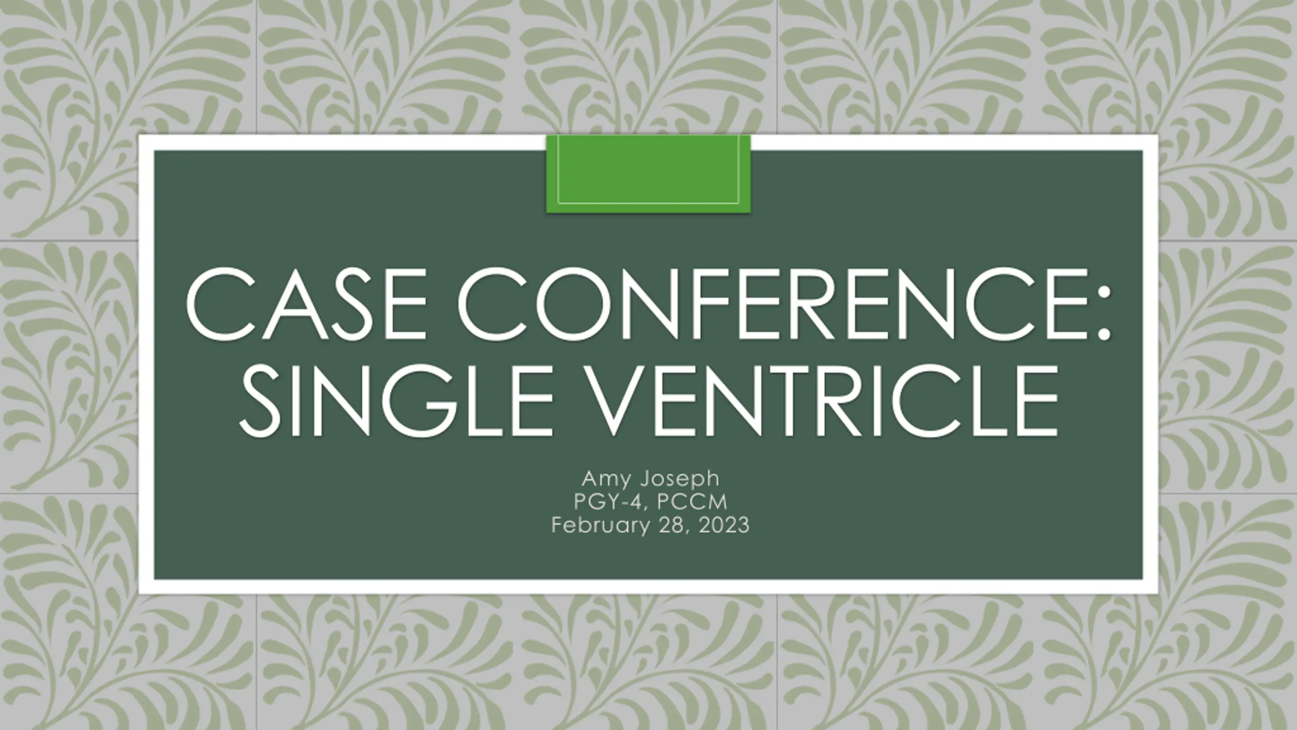 CASE CONFERENCE: SINGLE VENTRICLE Amy Joseph PGY-4, PCCM February 28, 2023