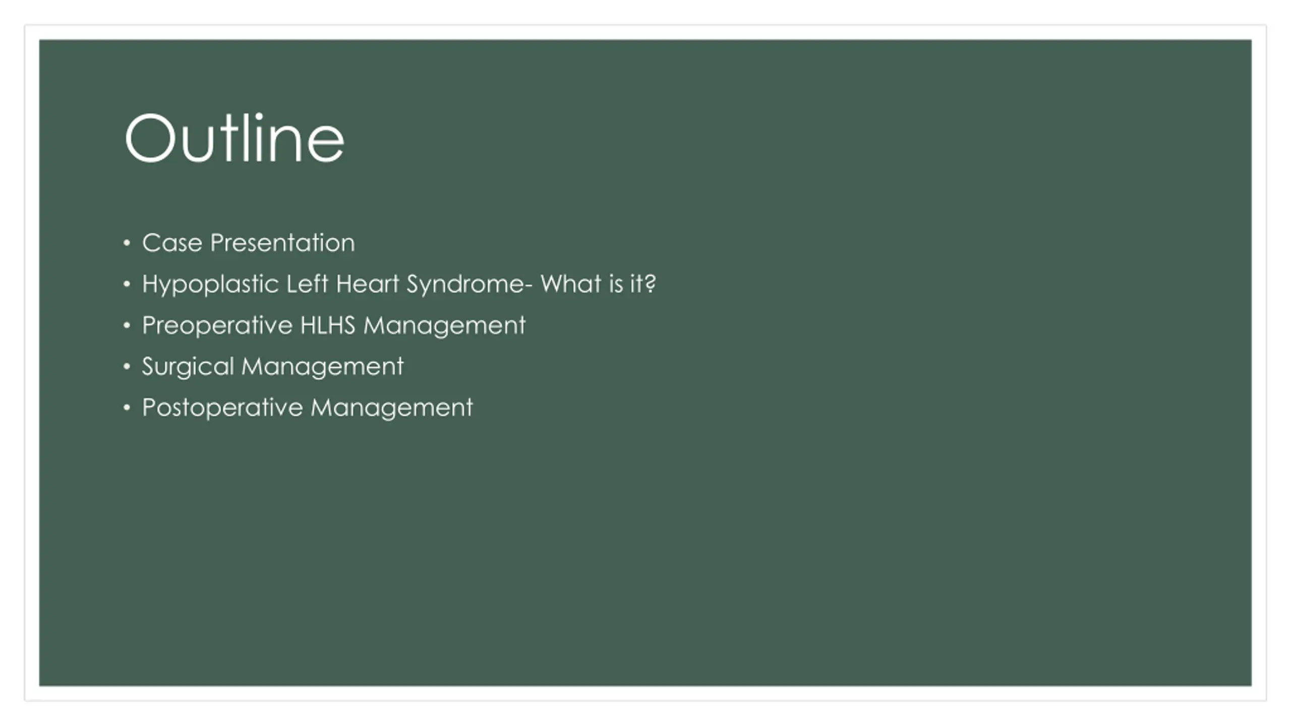 Outline Case Presentation Hypoplastic Left Heart Syndrome- What is it? Preoperative HLHS Management Surgical Management Postoperative Management