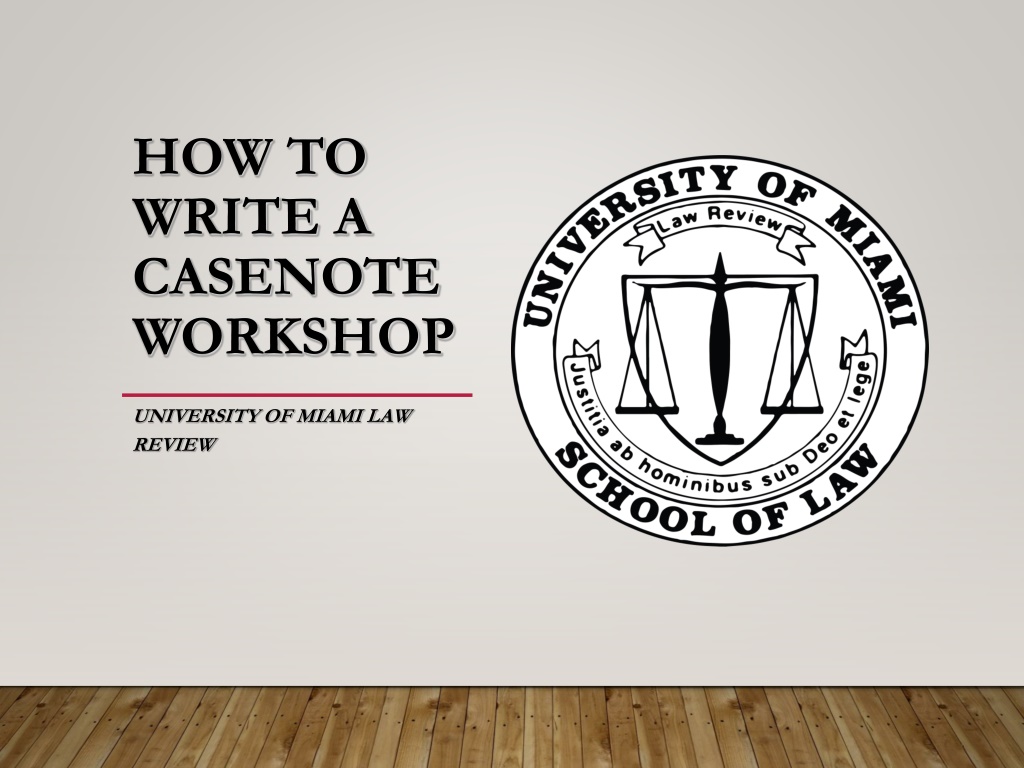 HOW TO WRITE A CASENOTE WORKSHOP UNIVERSITY OF MIAMI LAW REVIEW
