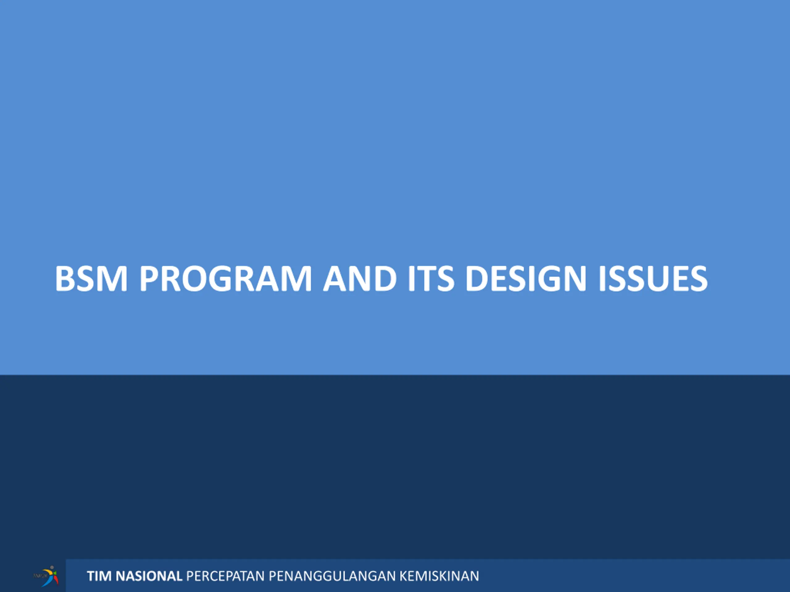 BSM PROGRAM AND ITS DESIGN ISSUES NATIONAL TEAM FOR THE ACCELERATION OF POVERTY REDUCTION TIM NASIONAL PERCEPATAN PENANGGULANGAN KEMISKINAN