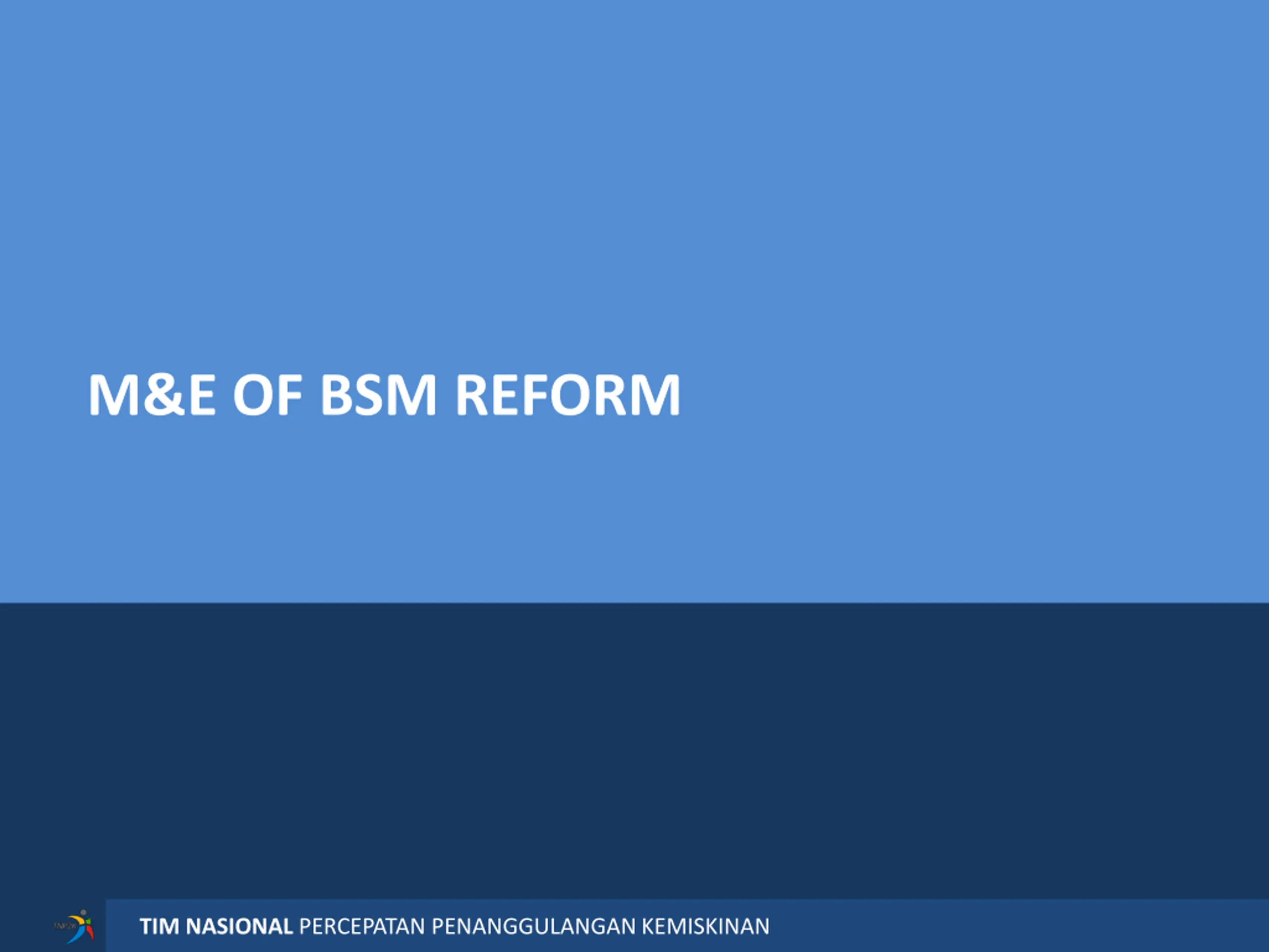 M&E OF BSM REFORM NATIONAL TEAM FOR THE ACCELERATION OF POVERTY REDUCTION TIM NASIONAL PERCEPATAN PENANGGULANGAN KEMISKINAN