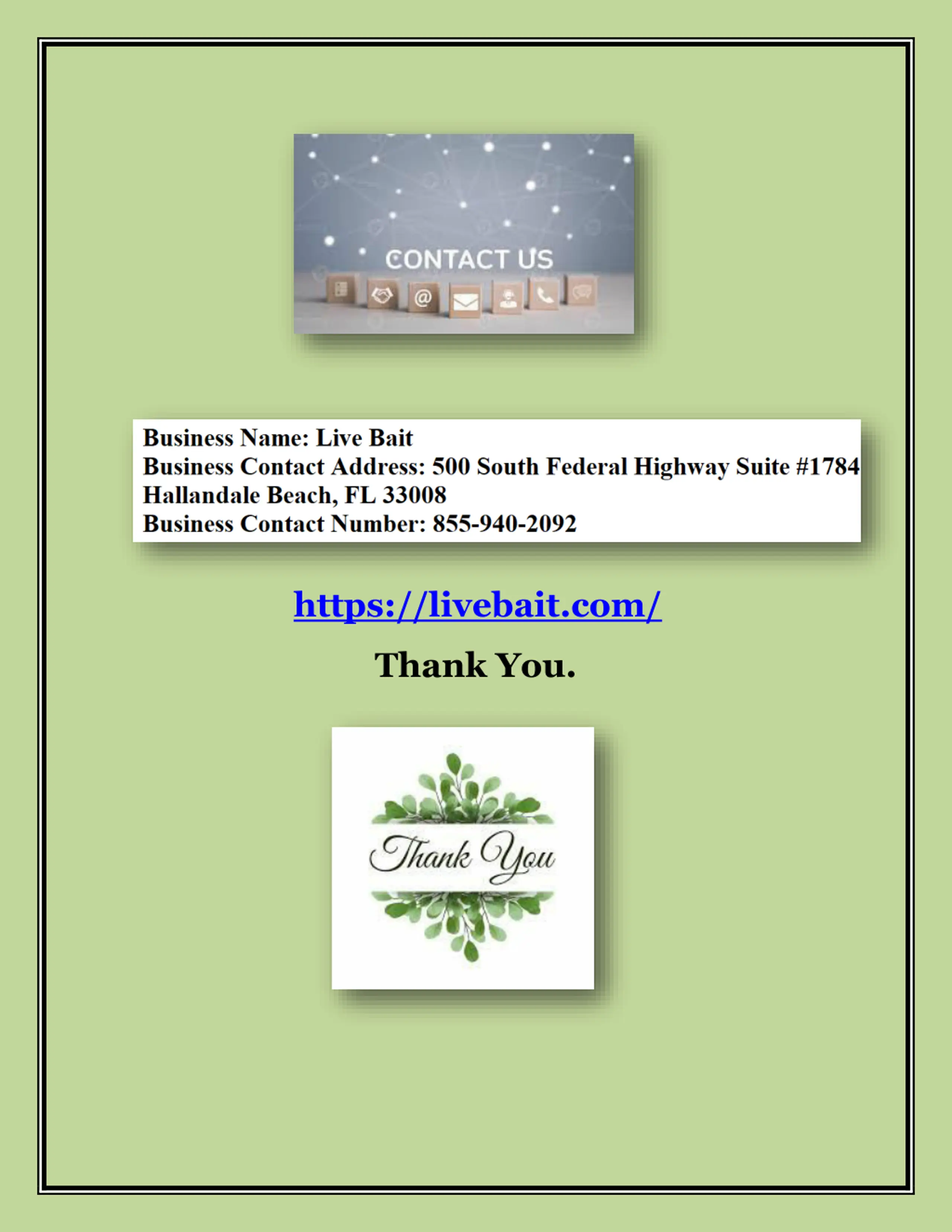 Live Bait Fishing Has a Home at LiveBait.com. When you can catch live bait, the fishing is easy. https://livebait.com/pages/about-us Social Media Profiles Contact Us