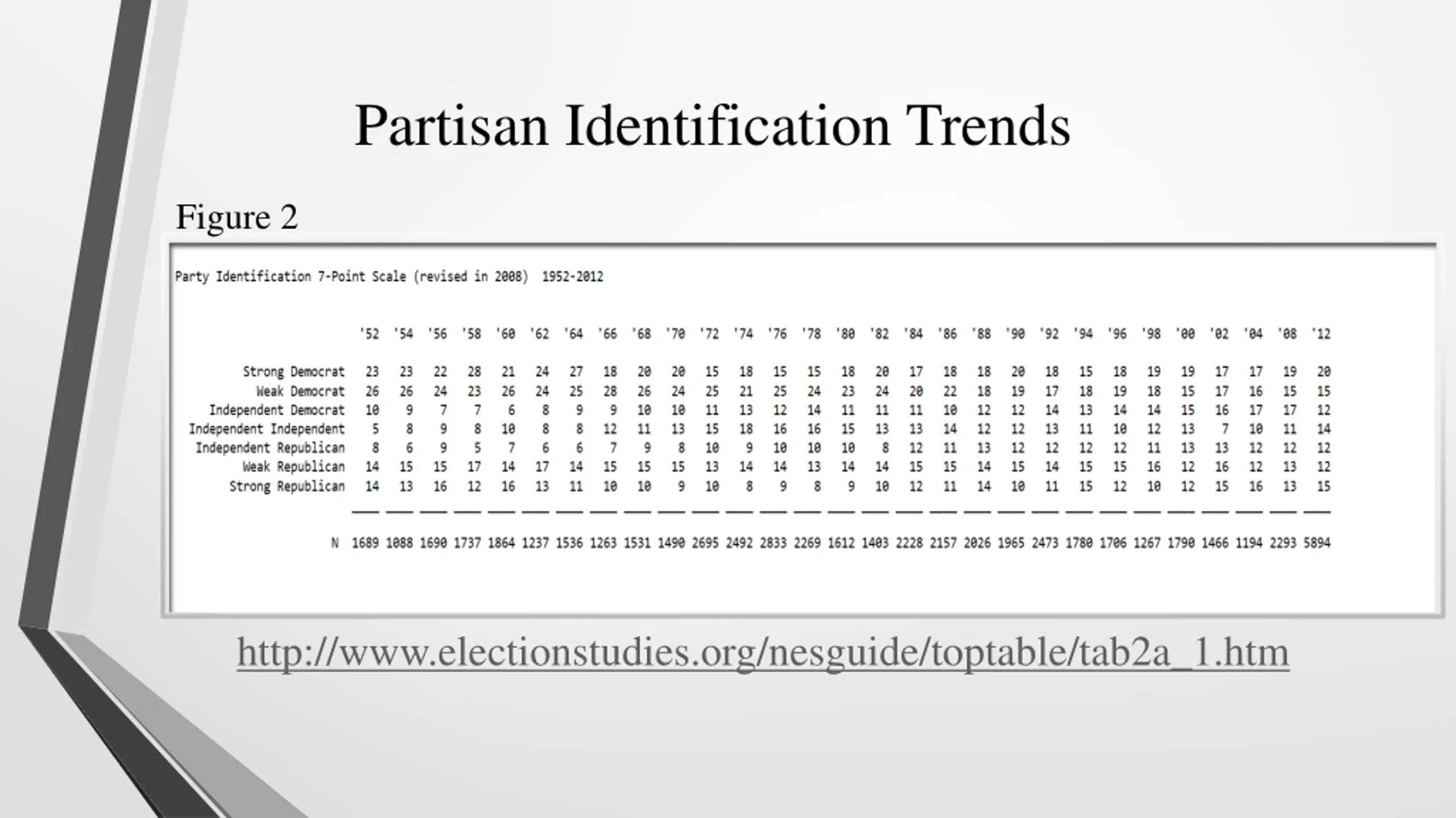 Partisan Identification Trends Figure 2 http://www.electionstudies.org/nesguide/toptable/tab2a_1.htm