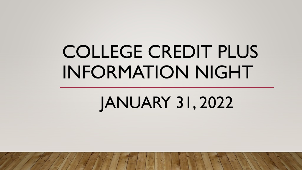 COLLEGE CREDIT PLUS INFORMATION NIGHT JANUARY 31, 2022