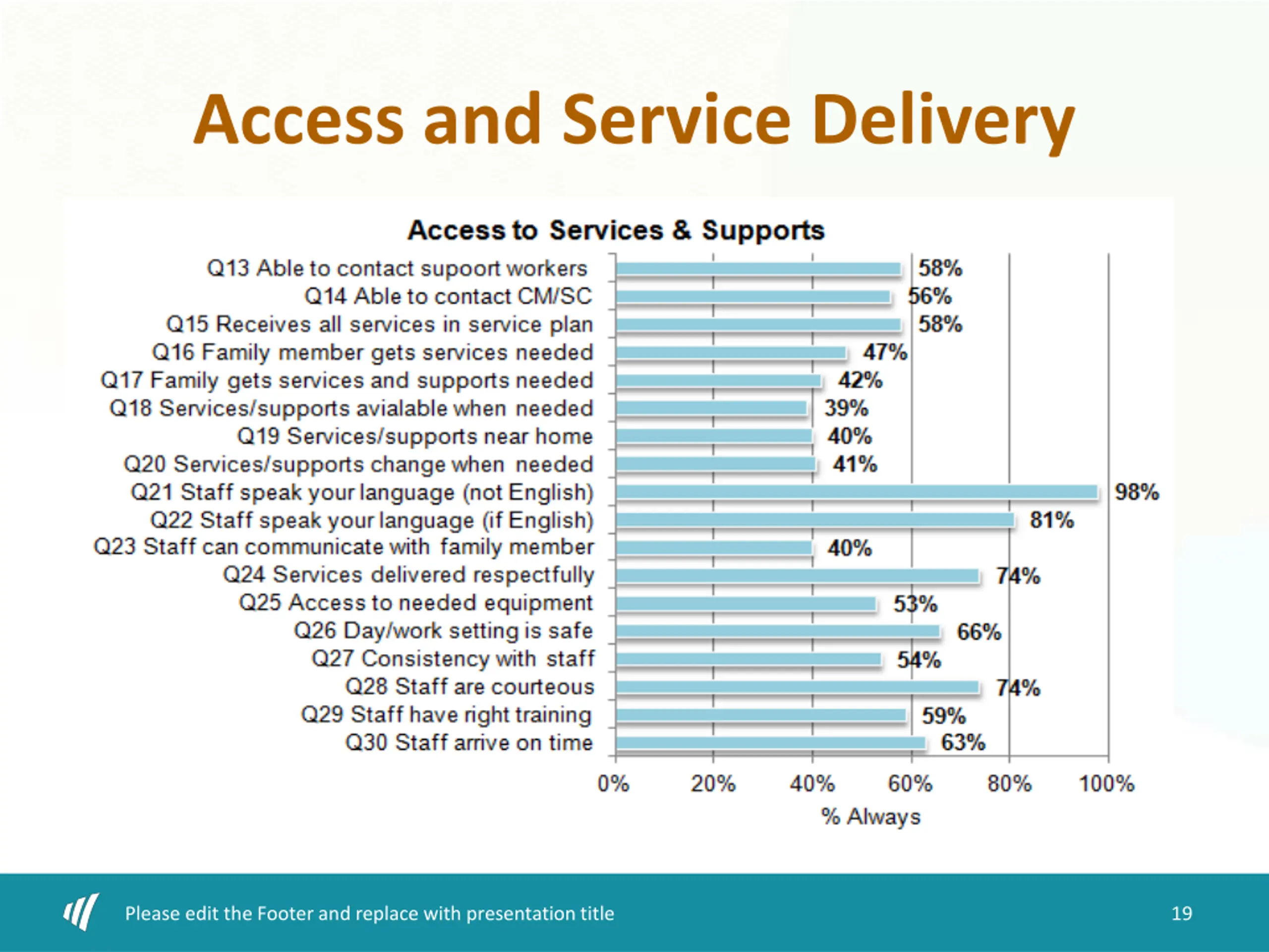 Access and Service Delivery Please edit the Footer and replace with presentation title 19