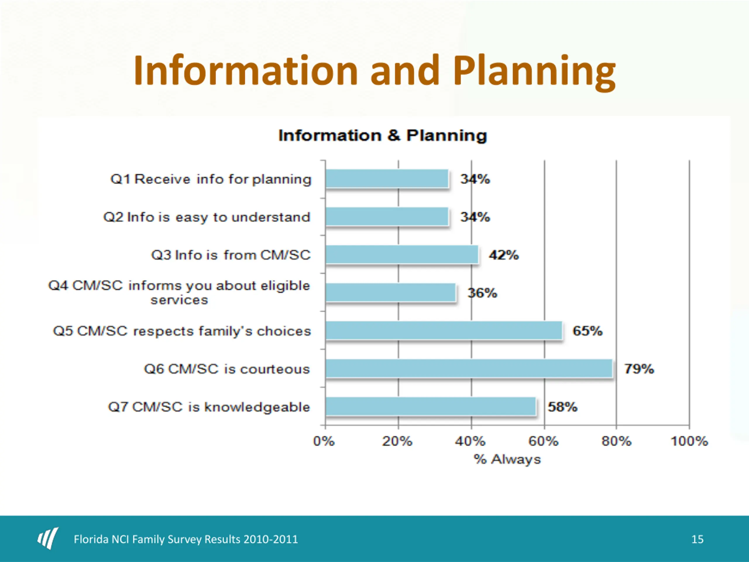 Information and Planning Florida NCI Family Survey Results 2010-2011 15
