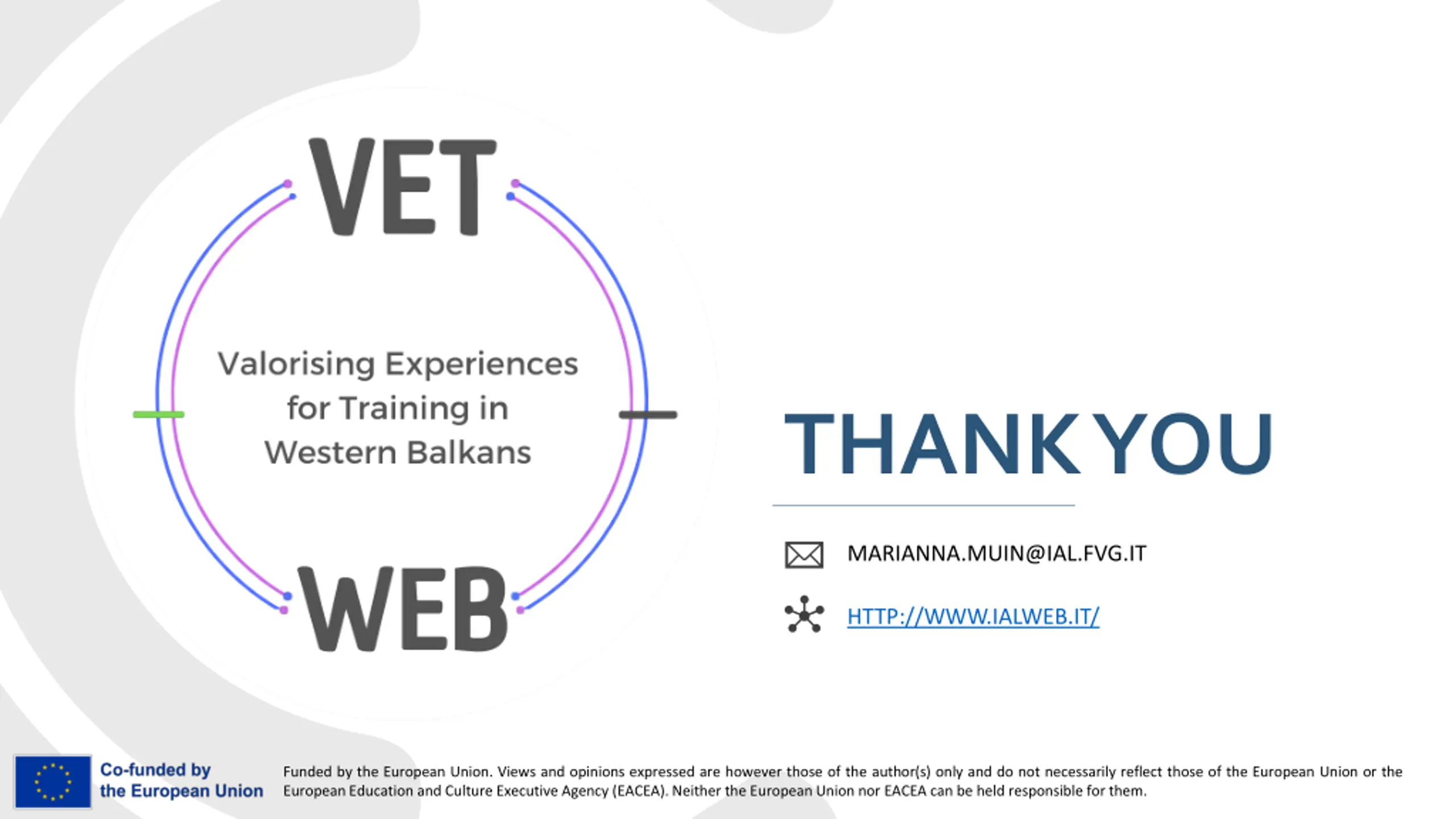 THANK YOU MARIANNA.MUIN@IAL.FVG.IT HTTP://WWW.IALWEB.IT/ Funded by the European Union. Views and opinions expressed are however those of the author(s) only and do not necessarily reflect those of the European Union or the EuropeanEducation and Culture Executive Agency (EACEA).Neither the EuropeanUnion nor EACEA can be held responsible for them.