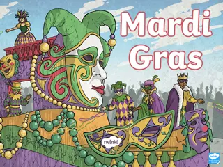 Listening Listen to a news item about Mardi Gras. Where is the presenter? Listen again and answer the questions with Yes or No 1- Are a lot of people going to come? 2- Is the woman riding on the float alone? 3- Is she wearing her mask at the start? 4-Does the reporter think Lorette will have a good time?