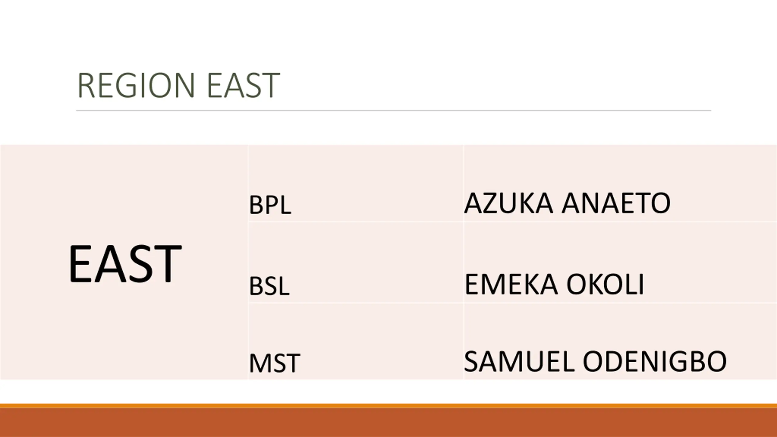 REGION EAST AZUKA ANAETO BPL EAST EMEKA OKOLI BSL SAMUEL ODENIGBO MST