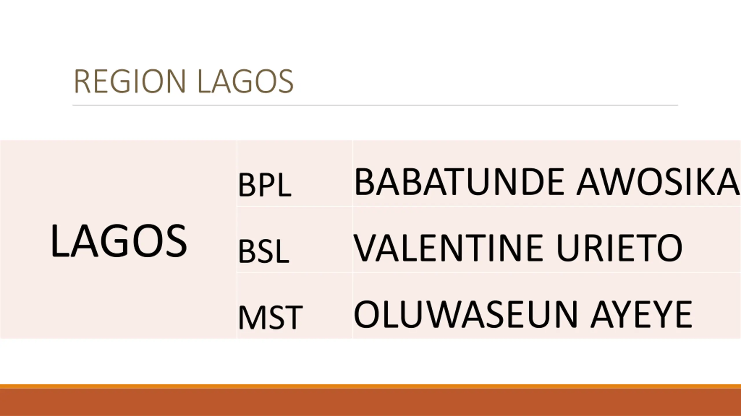 REGION LAGOS BABATUNDE AWOSIKA BPL LAGOS VALENTINE URIETO BSL OLUWASEUN AYEYE MST