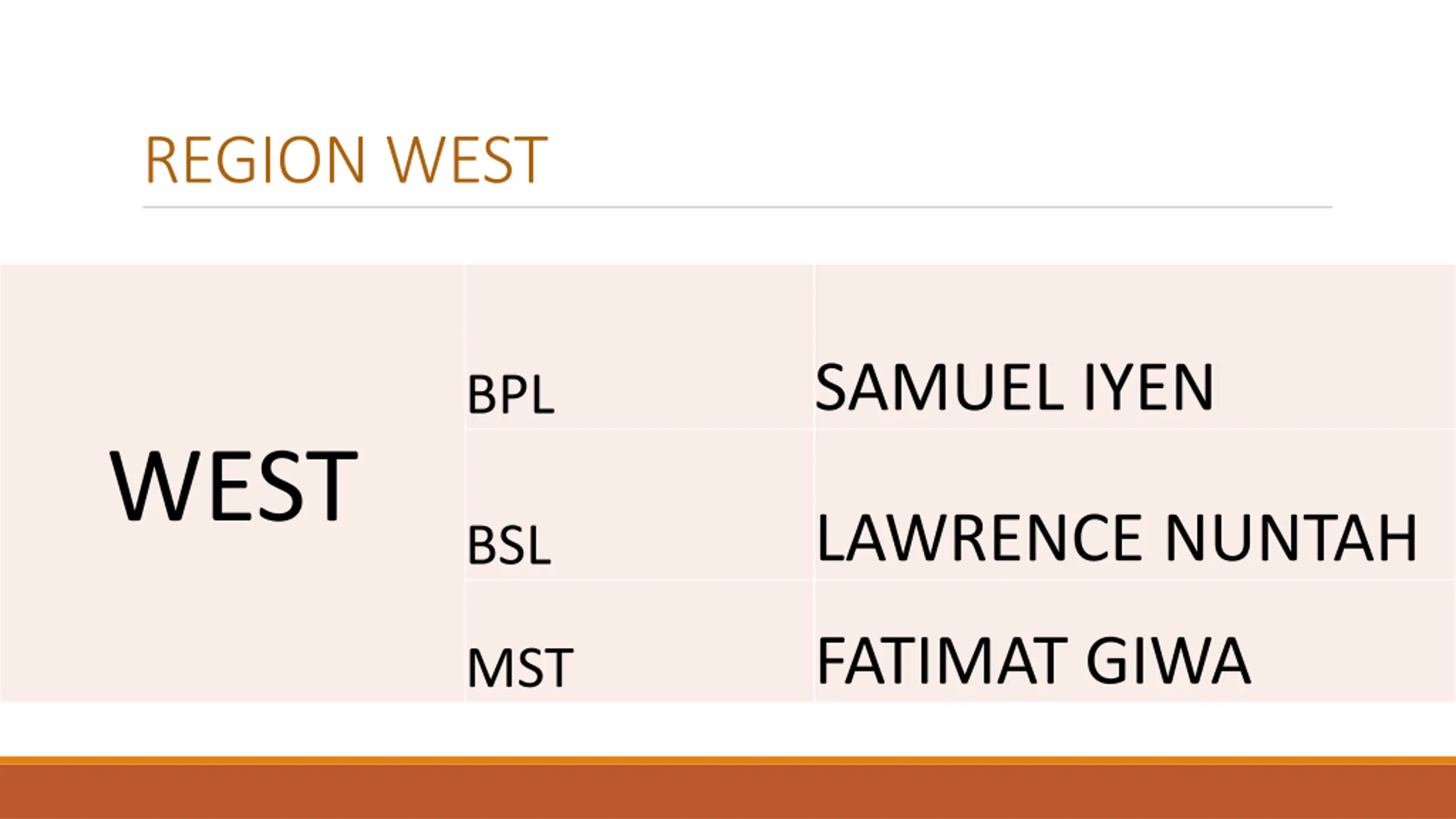 REGION WEST SAMUEL IYEN BPL WEST LAWRENCE NUNTAH BSL FATIMAT GIWA MST