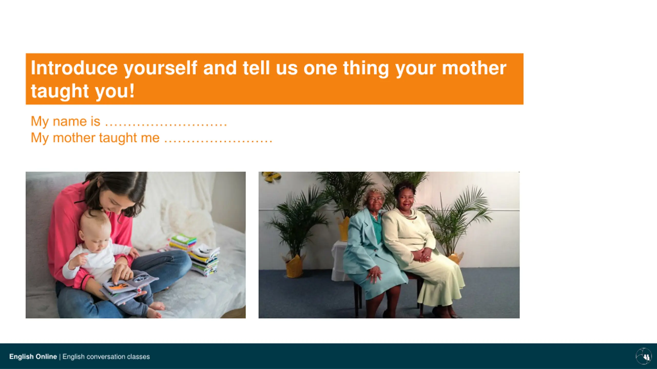Introduce yourself and tell us one thing your mother taught you! My name is My mother taught me English Online | English conversation classes