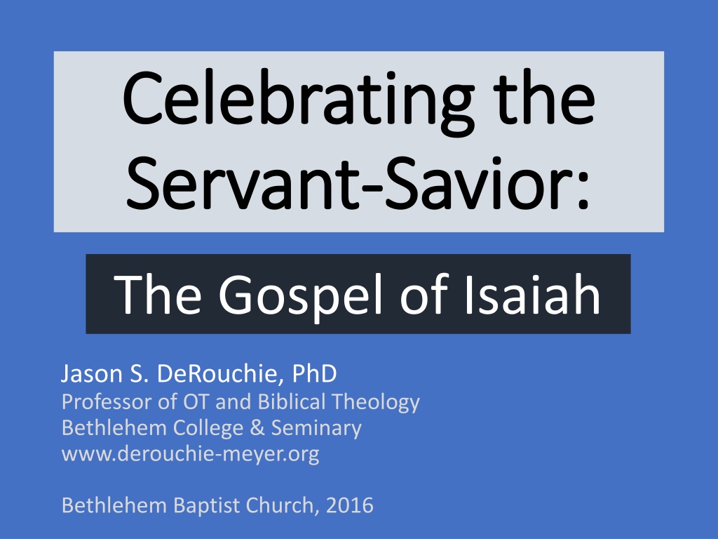 Celebrating the Celebrating the Servant Servant- -Savior: Savior: The Gospel of Isaiah Jason S. DeRouchie, PhD Professor of OT and Biblical Theology Bethlehem College & Seminary www.derouchie-meyer.org Bethlehem Baptist Church, 2016