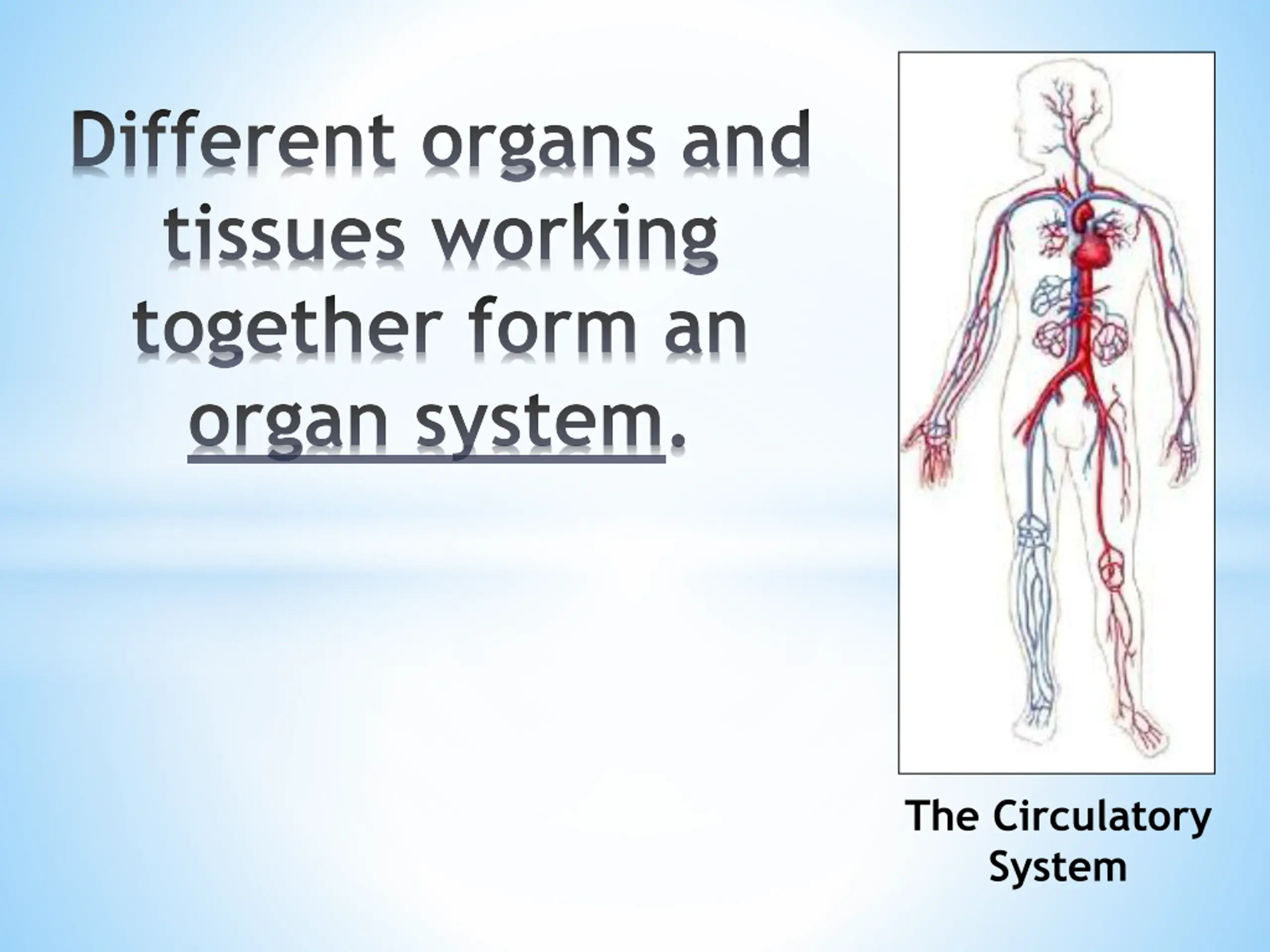 Different organs and tissues working together form an organ system. The Circulatory System