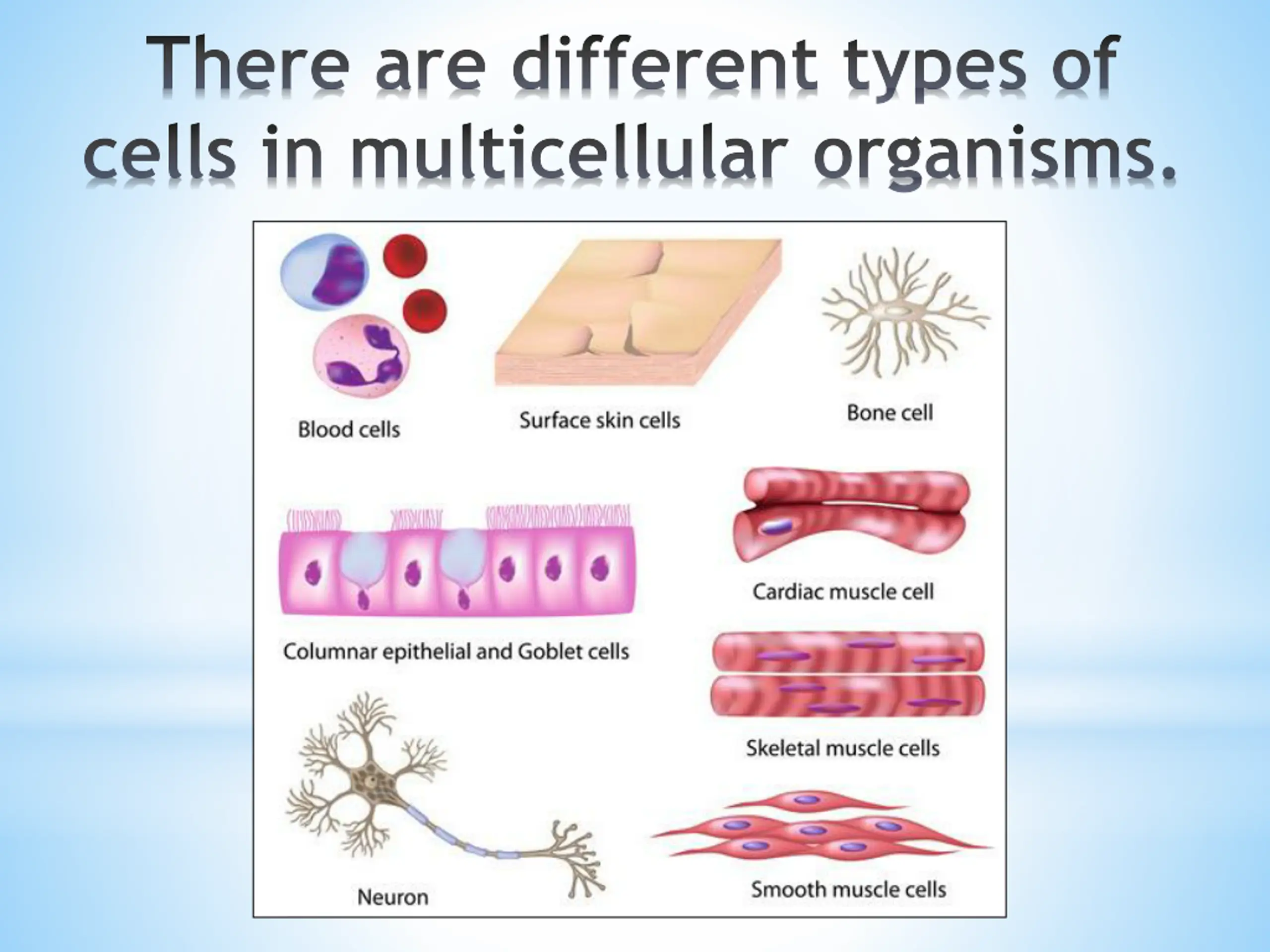 There are different types of cells in multicellular organisms.