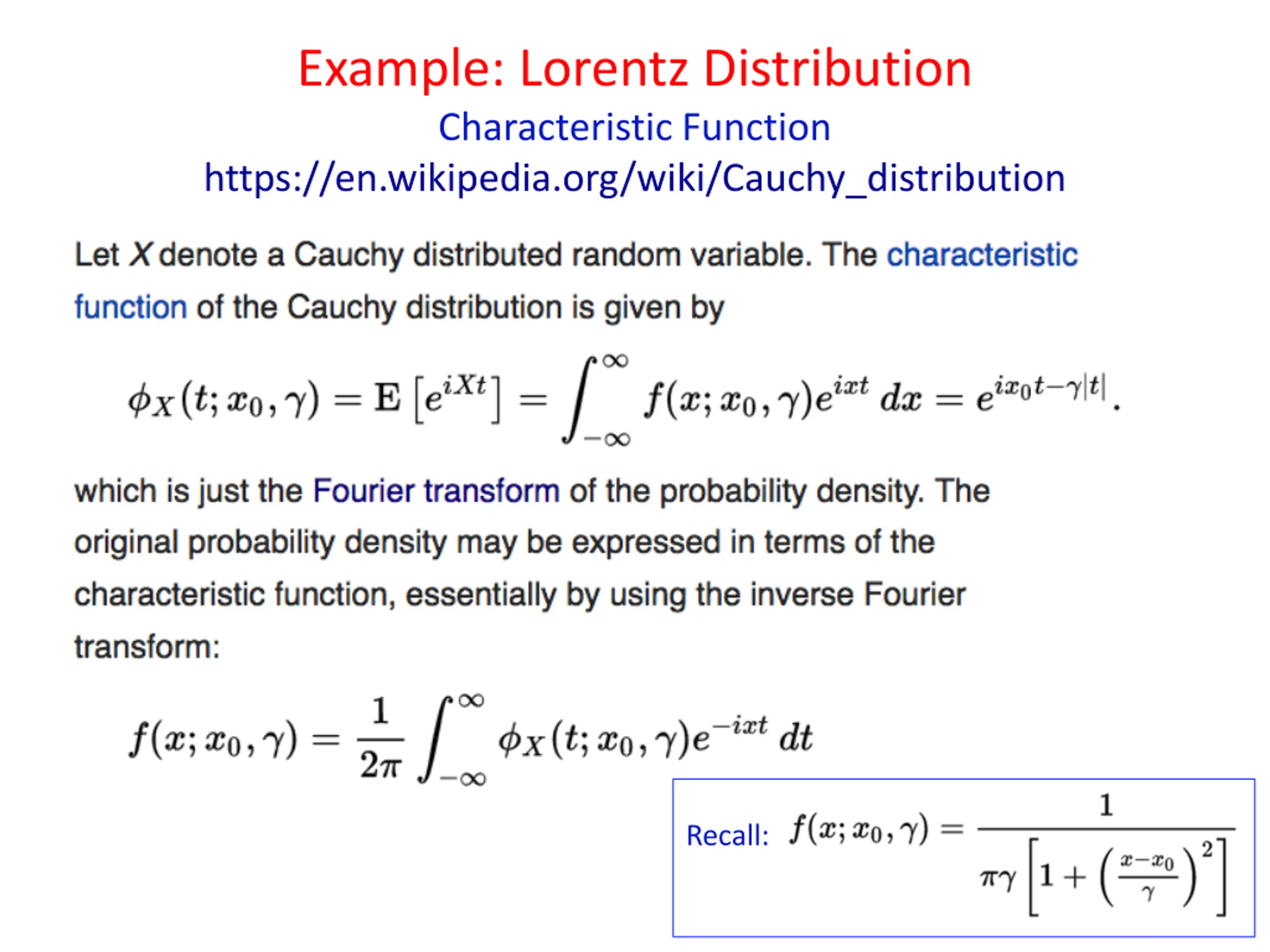 Example: Lorentz Distribution Characteristic Function https://en.wikipedia.org/wiki/Cauchy_distribution Recall: