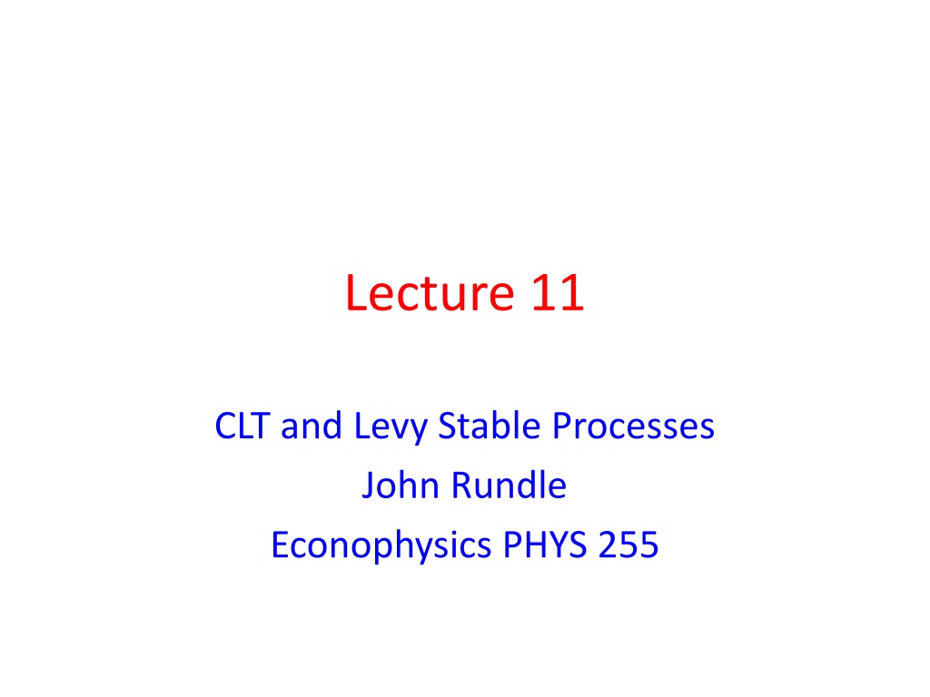 Lecture 11 CLT and Levy Stable Processes John Rundle Econophysics PHYS 255