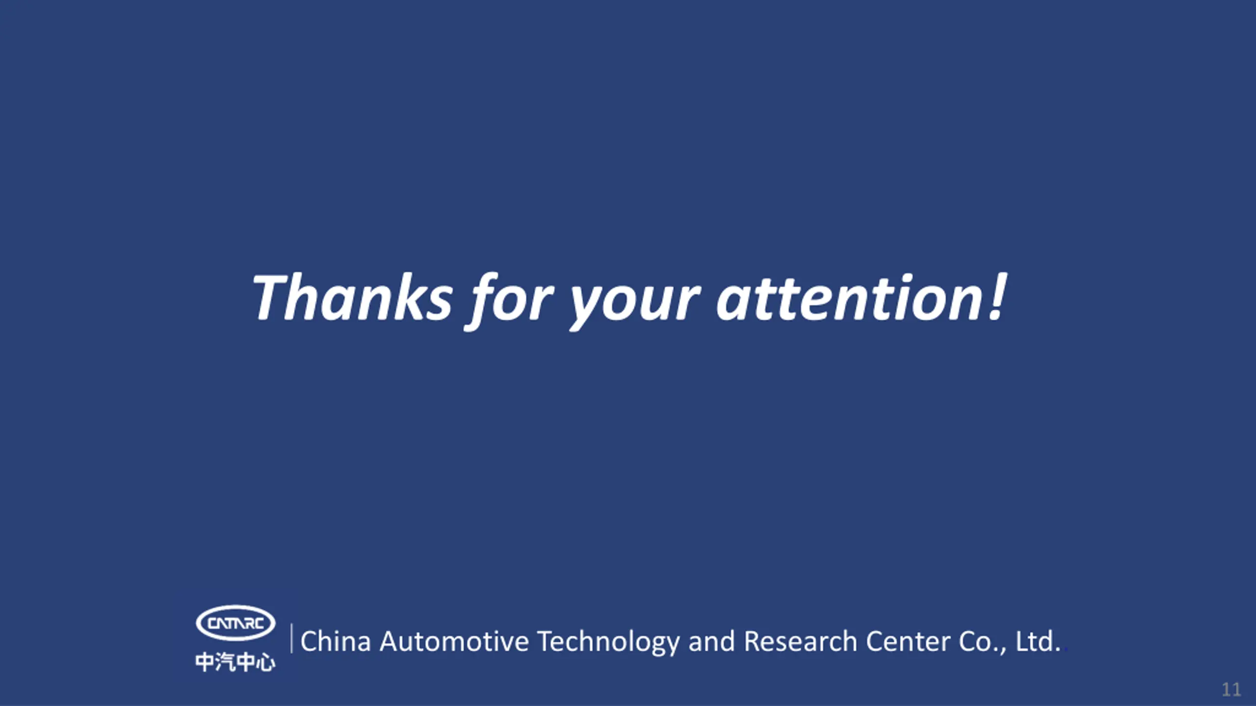 Thanks for your attention! China Automotive Technology and Research Center Co., Ltd.. 11