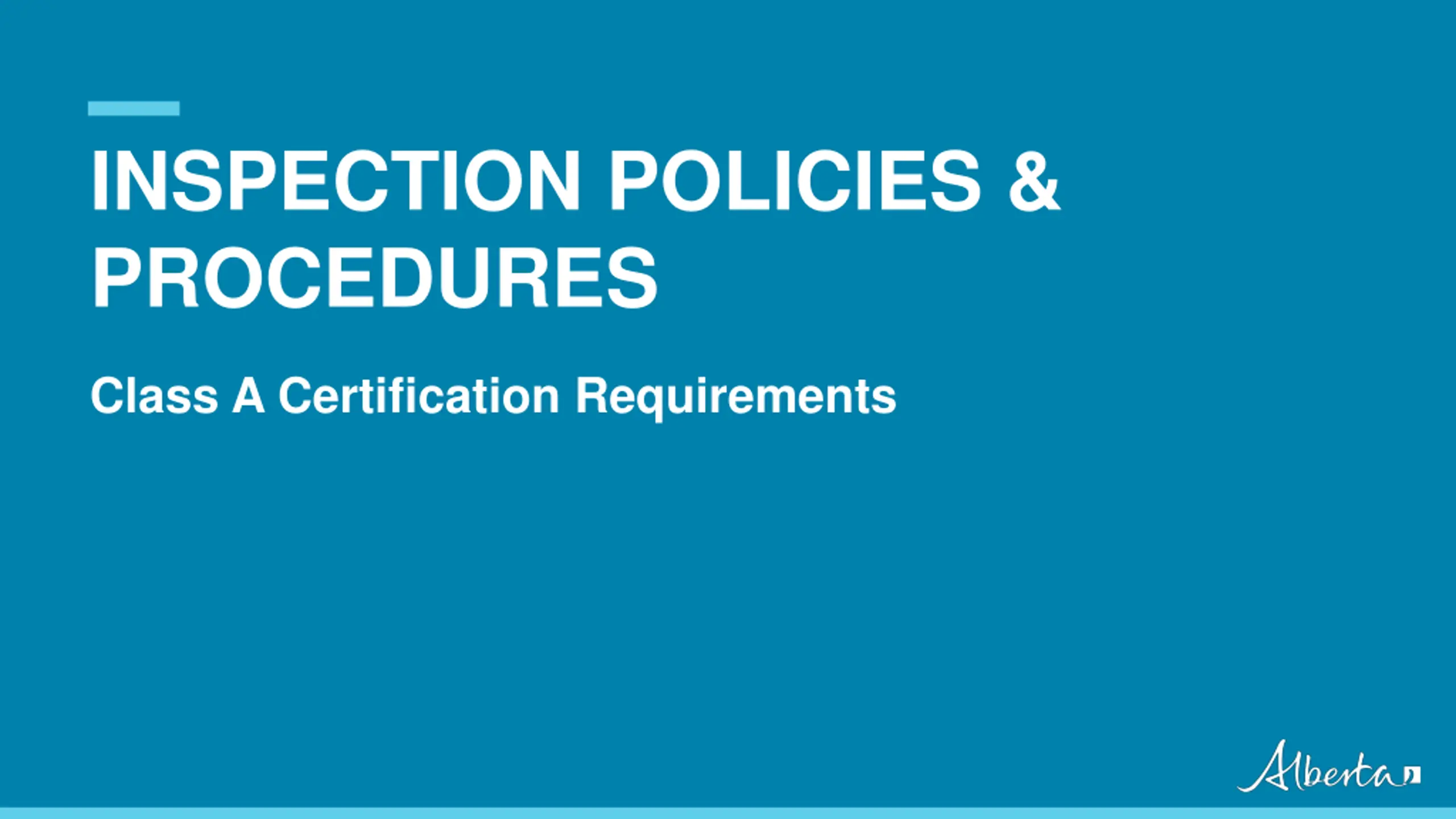 INSPECTION POLICIES & PROCEDURES Class A Certification Requirements Classification: Protected A